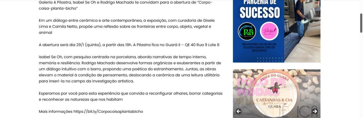 A Pilastra, na QE40 do Guará II, é um ponto cultural e te convida a conhecer exposição de arte contemporânea - Blog da Zuleika