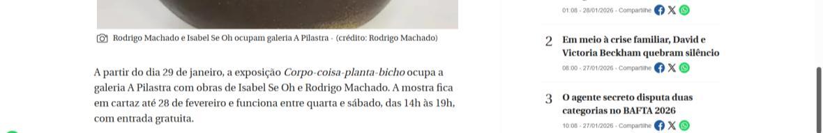 O título “Corpo-coisa-planta-bicho” funciona como uma sequência aberta e não hierarquizada, espelhando a própria proposta das obras: borrar categorias e convidar a uma leitura sensorial e afetiva. A exposição permanece em cartaz na A Pilastra, reafirmando o poder da arte como espaço de encontro, questionamento e transformação do olhar.