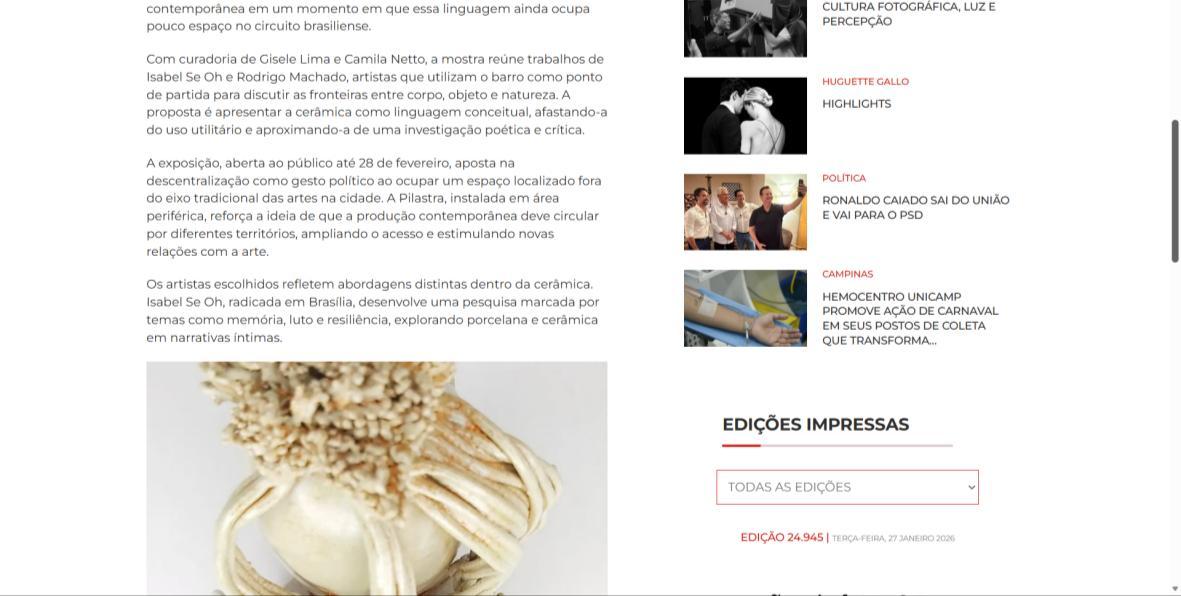 A cerâmica artística tem ganhado espaço na cena contemporânea mundial e, localmente, já é possível perceber o surgimento de ateliês, coletivos e iniciativas dedicadas a essa linguagem. Entendo esse movimento como uma resposta direta aos tempos acelerados em que vivemos, marcados pela tecnologia, pela inteligência artificial e pela lógica da produtividade imediata.