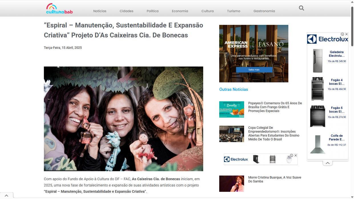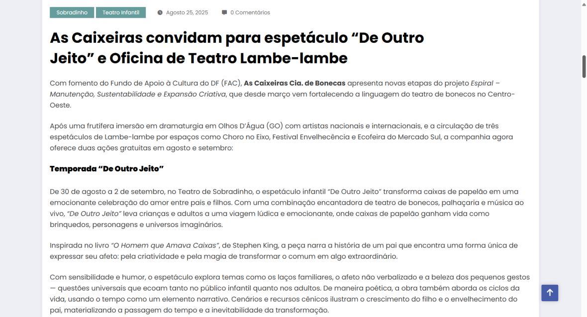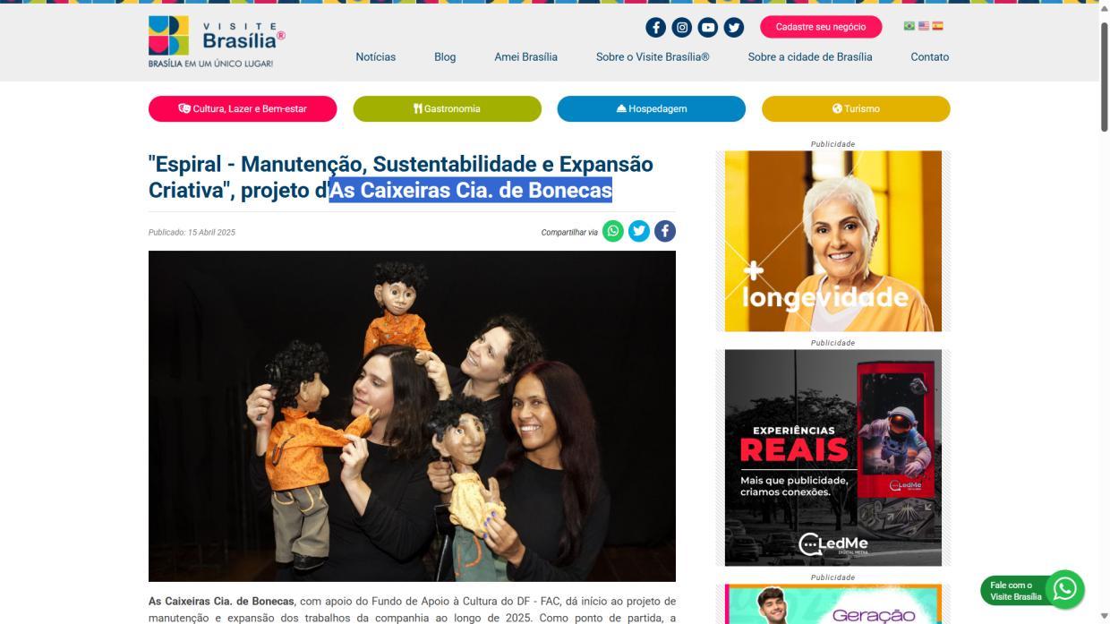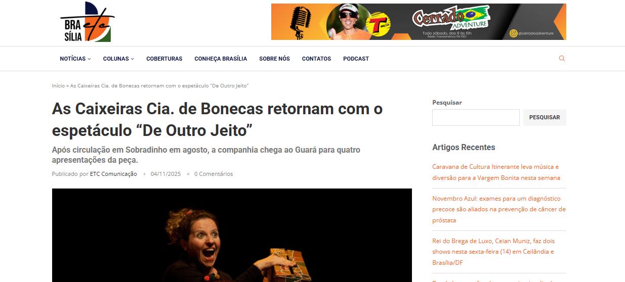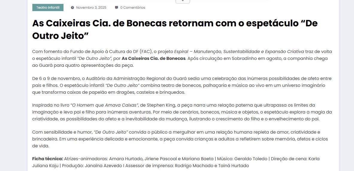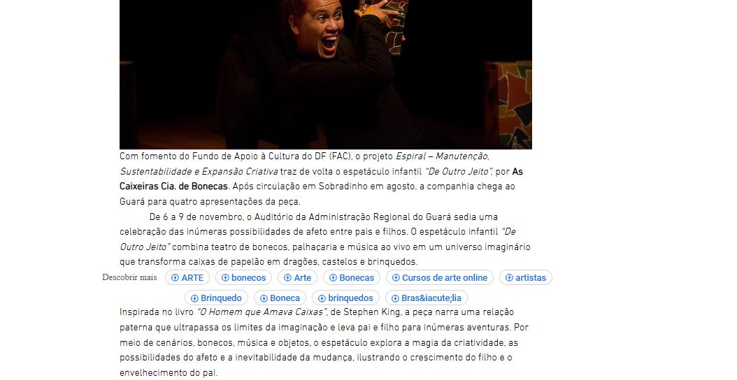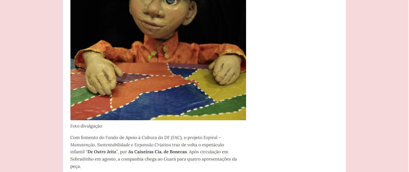 - Manutenção, Sustentabilidade e Expansão Criativa", projeto d’As Caixeiras Cia. de Bonecas - Jornal do Planalto