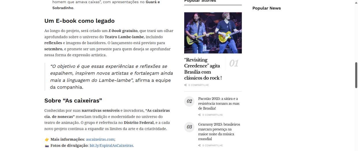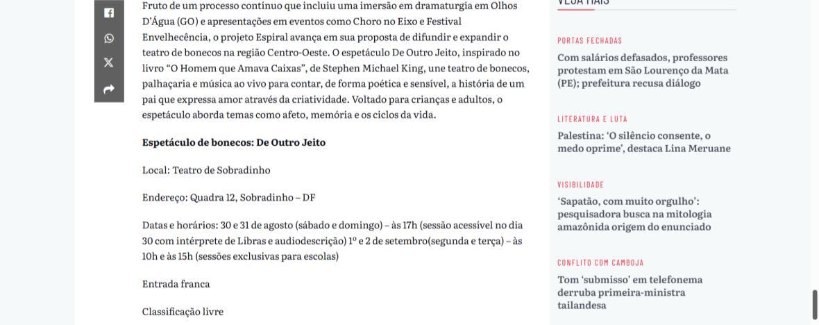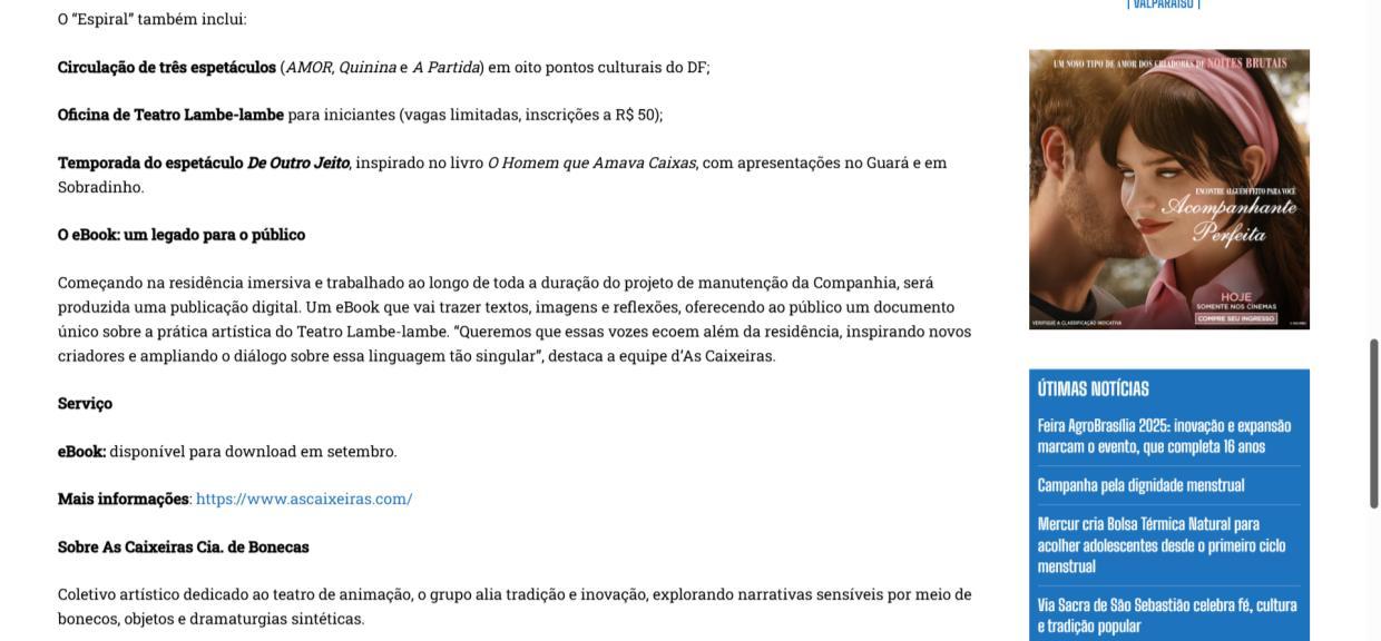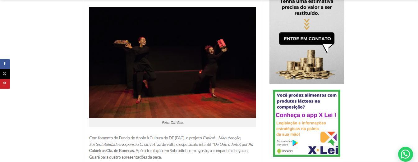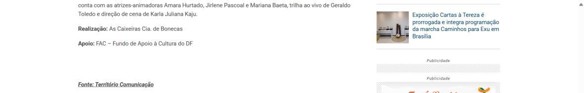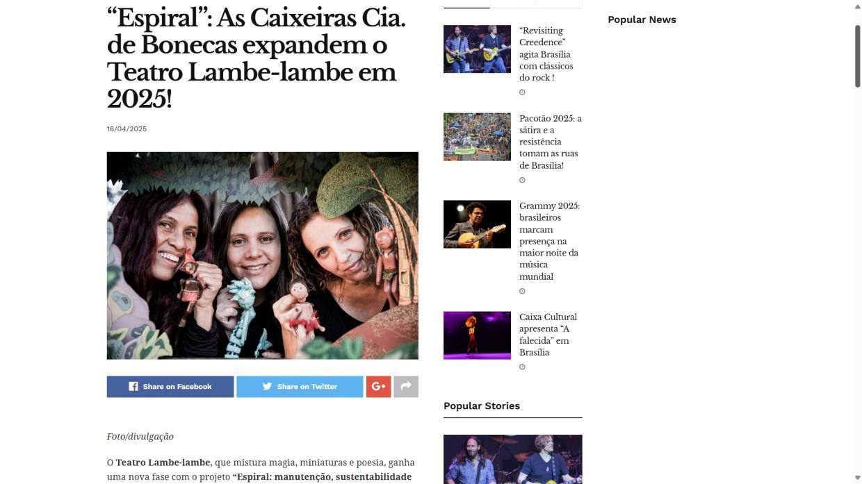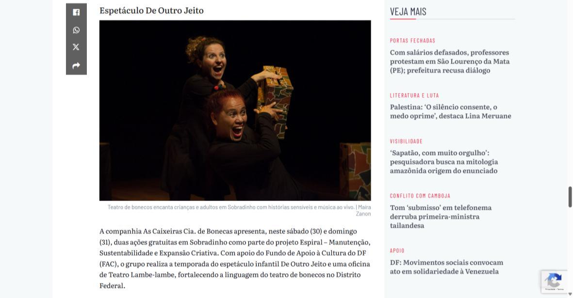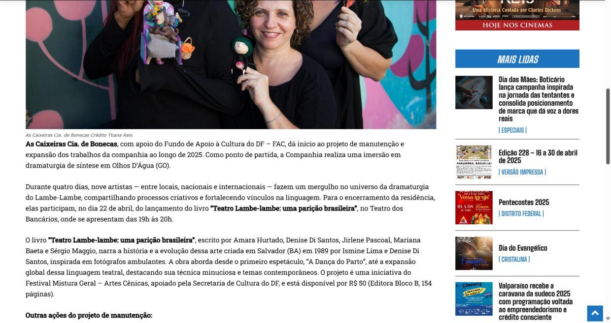 - Manutenção, Sustentabilidade e Expansão Criativa", projeto d’As Caixeiras Cia. de Bonecas - Jornal do Planalto