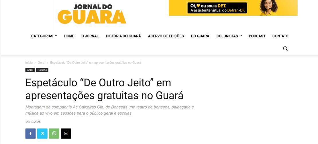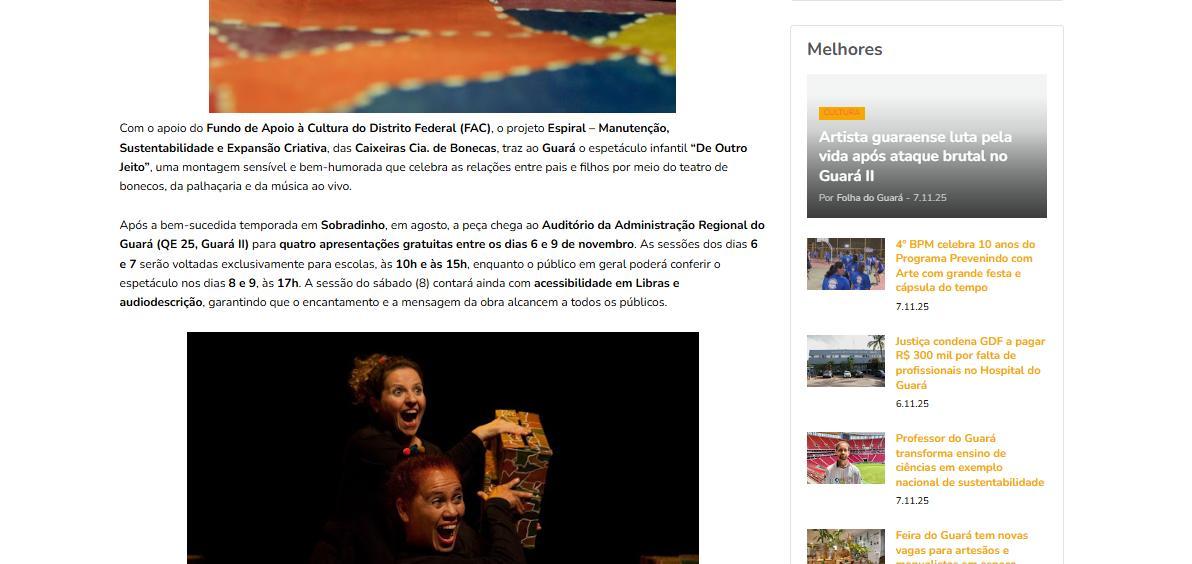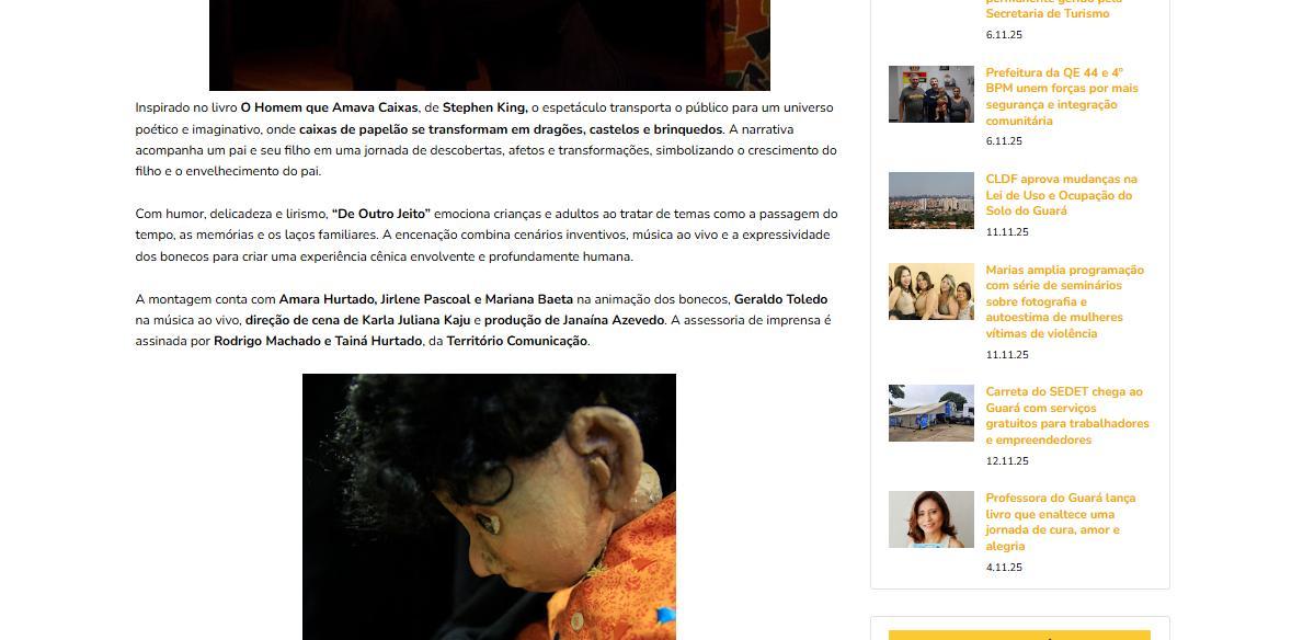 Espetáculo “De Outro Jeito” encanta o Guará com poesia, afeto e imaginação – Folha do Guará
