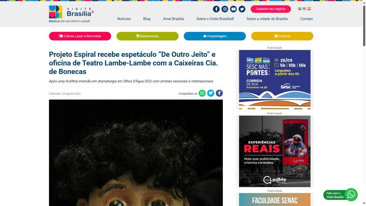 As Caixeiras Cia. de Bonecas convidam para espetáculo "De Outro Jeito" e Oficina de Teatro Lambe-lambe no projeto Espiral - Roteiro Baby Brasília
