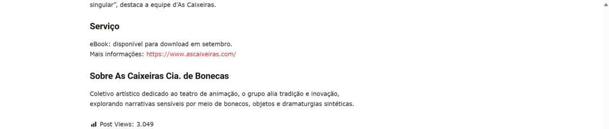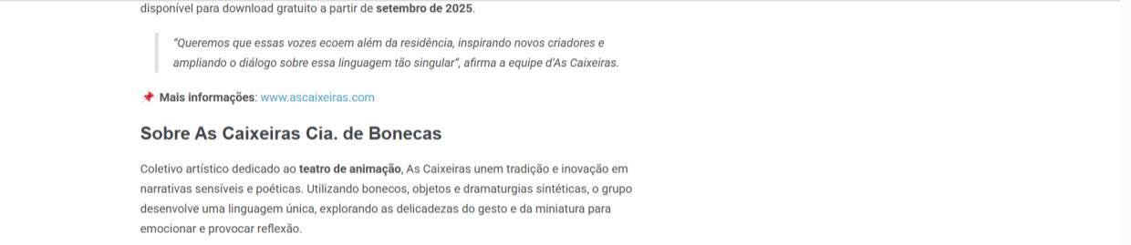 - Manutenção, Sustentabilidade e Expansão Criativa", projeto d’As Caixeiras Cia. de Bonecas | Ela Fala Dos Bastidores