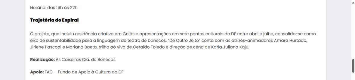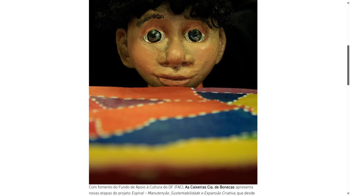 “Espiral – Manutenção, Sustentabilidade e Expansão Criativa” Projeto d’As Caixeiras Cia. de Bonecas – cultura.bsb.br