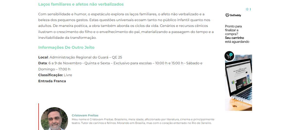 Espetáculo “De Outro Jeito” em apresentações gratuitas no Guará – Jornal do Guará