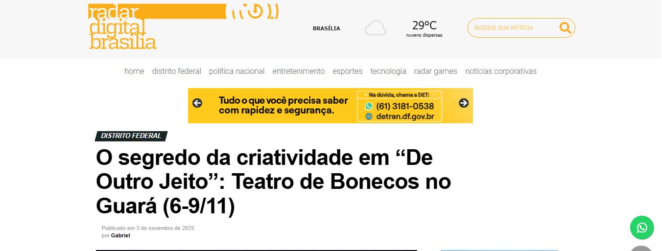 O segredo da criatividade em “De Outro Jeito”: Teatro de Bonecos no Guará (6-9/11) –Radar Digital Brasília
