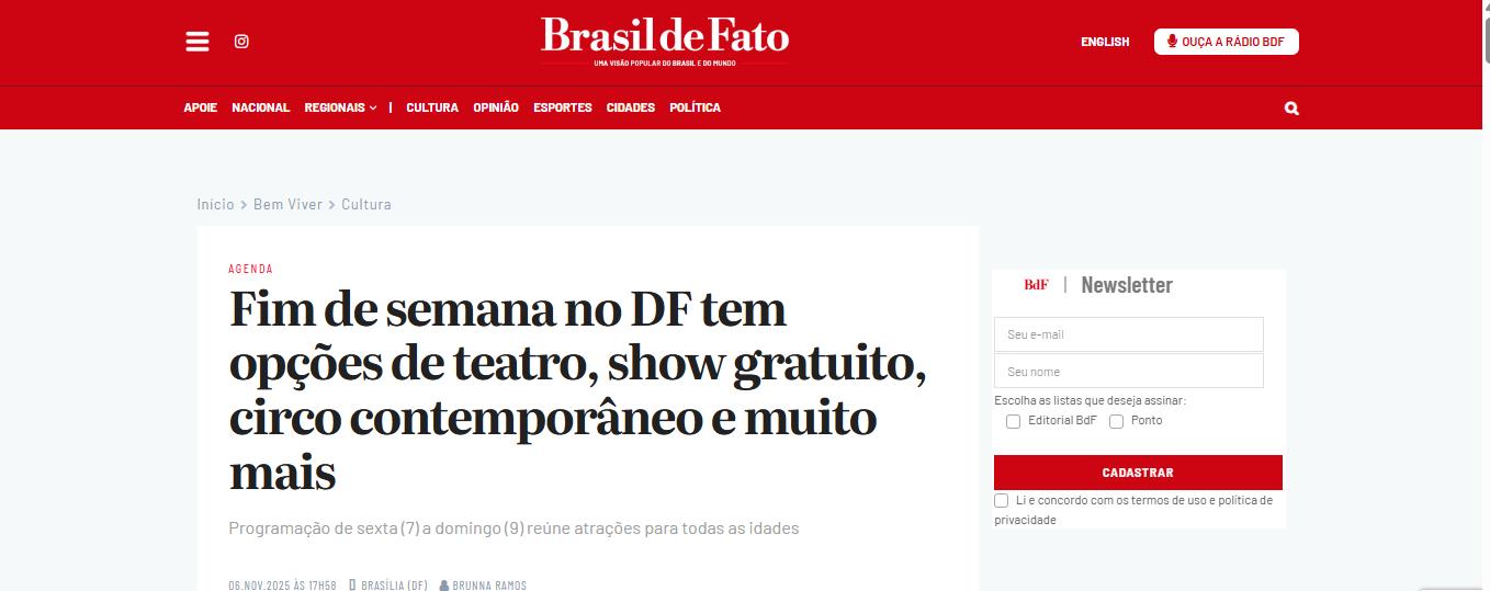 Fim de semana no DF tem opções de teatro, show gratuito, circo contemporâneo e muito mais – Brasil de Fato