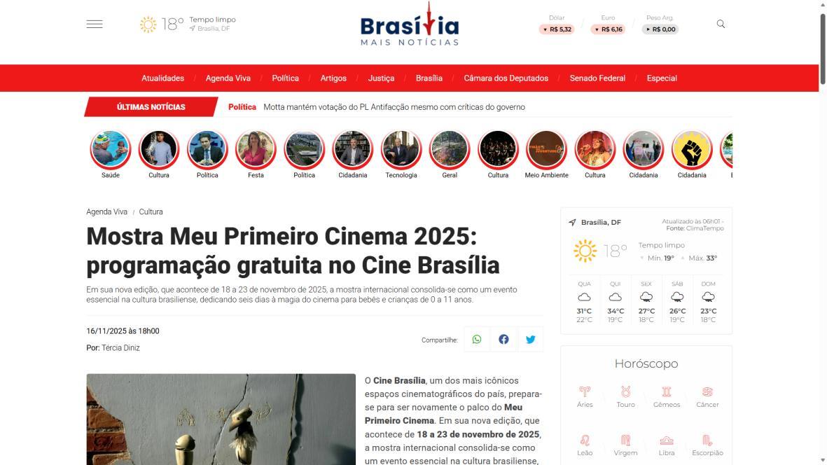 Mostra Meu Primeiro Cinema 2025: programação gratuita no Cine Brasília | Brasília Web - Eventos de Cinema