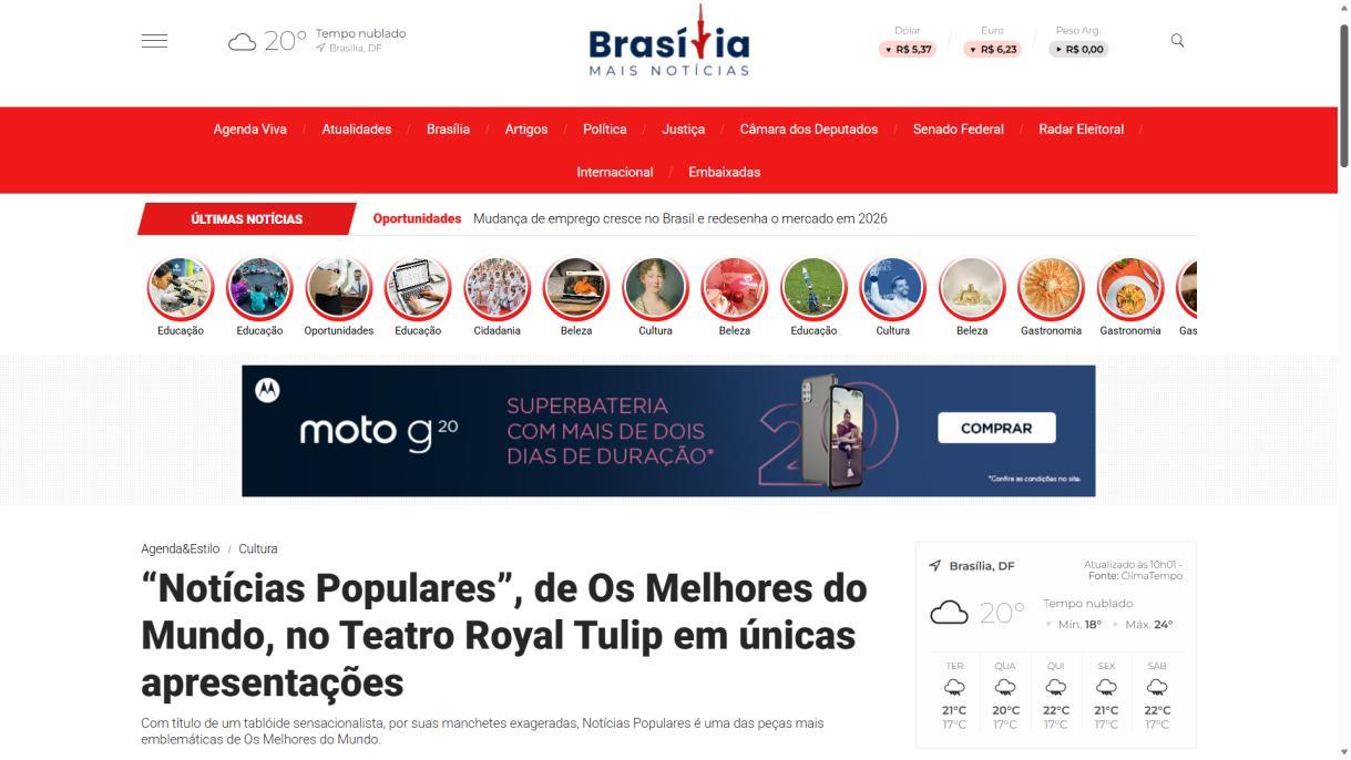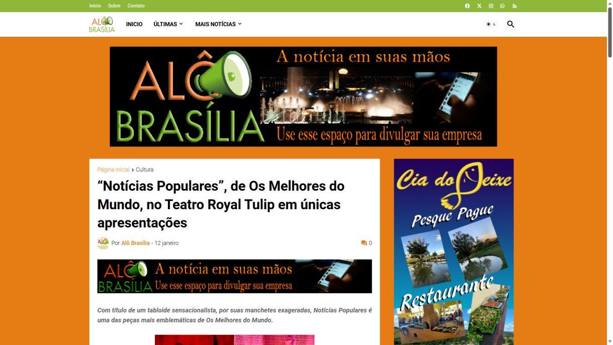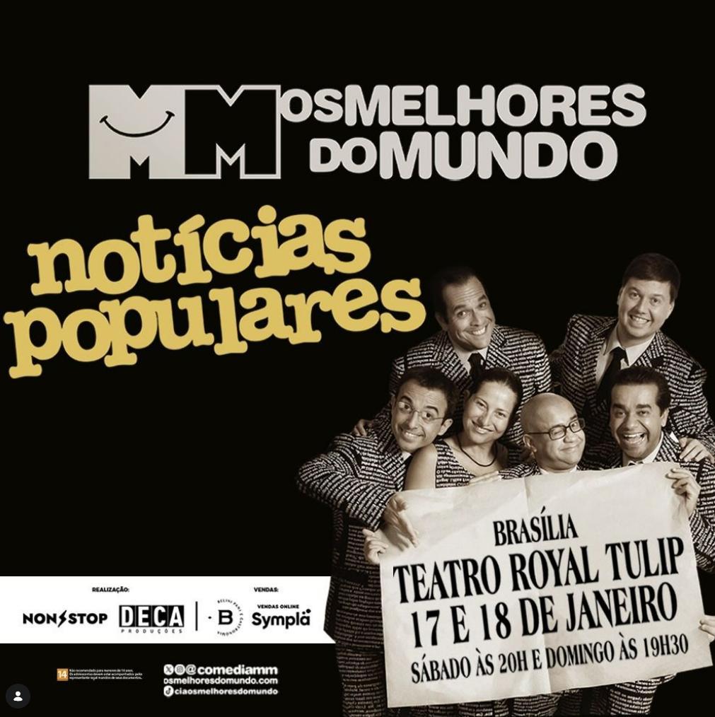 “Notícias Populares”, de Os Melhores do Mundo, no Teatro Royal Tulip em únicas apresentações - Agita Brasília
