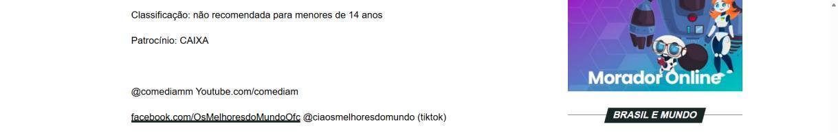 @comediamm Youtube.com/comediam facebook.com/OsMelhoresdoMundoOfc @ciaosmelhoresdomundo (tiktok)