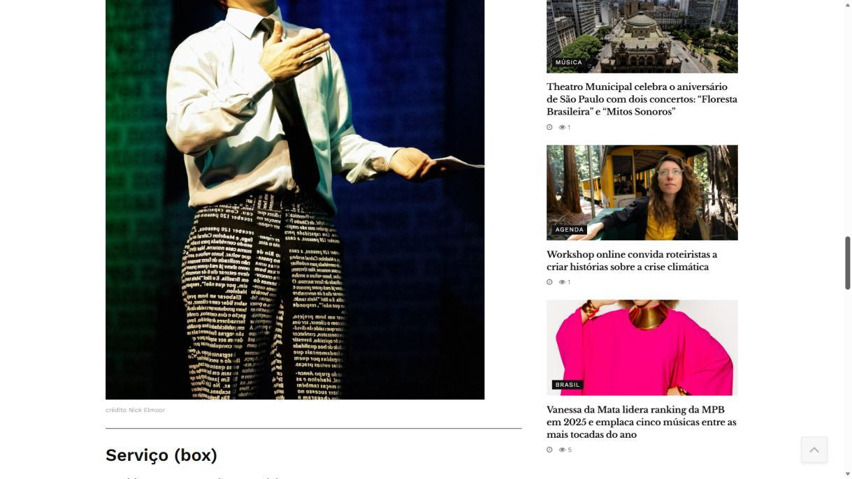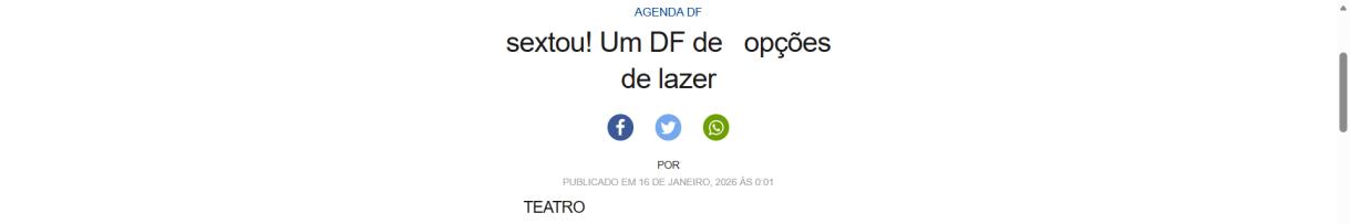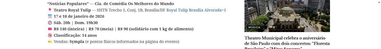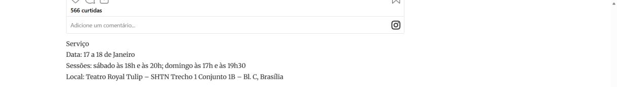 Temporada: 17 e 18 de janeiro de 2026. Sábado, às 20h e domingo, às 19h30