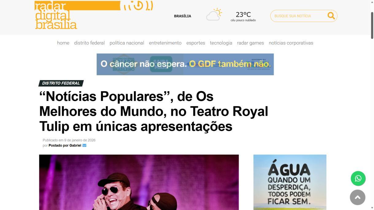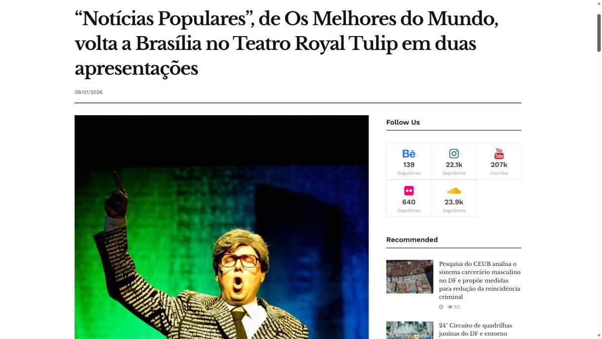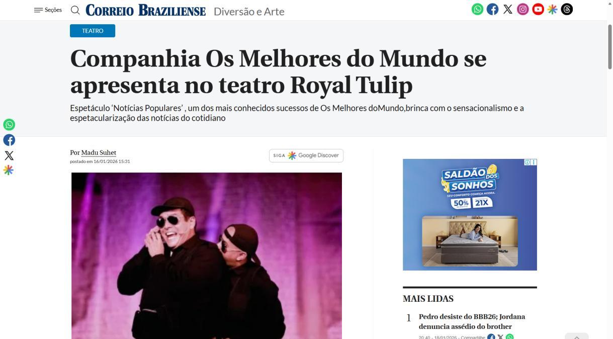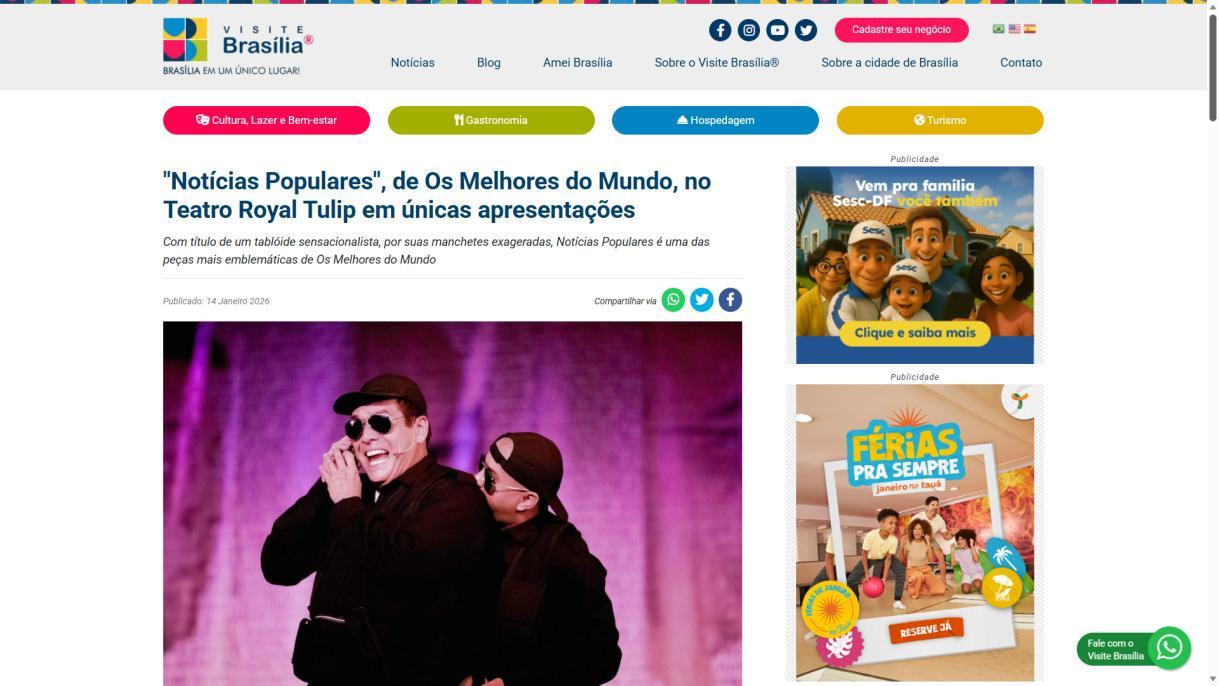 “Notícias Populares”, de Os Melhores do Mundo, no Teatro Royal Tulip em únicas apresentações - Portal Indica Brasília