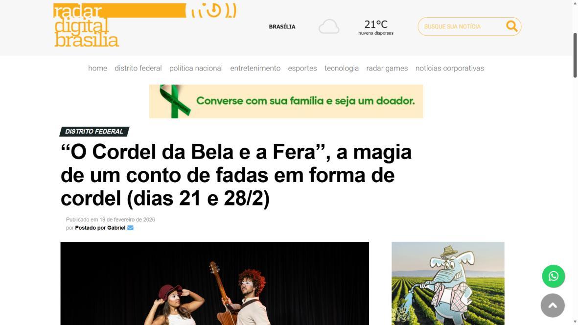 O Cordel da Bela e a Fera leva clássico dos contos de fadas ao palco com rimas, ciranda e ritmos nordestinos no Teatro Brasília Shopping – CidadeCULT