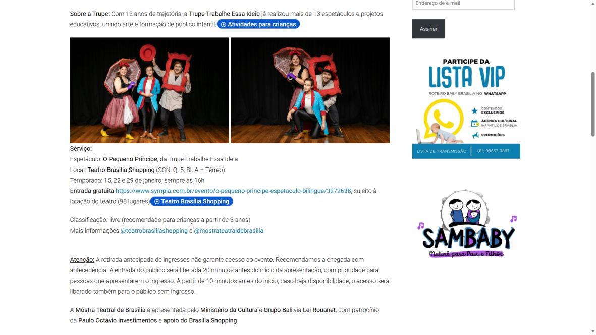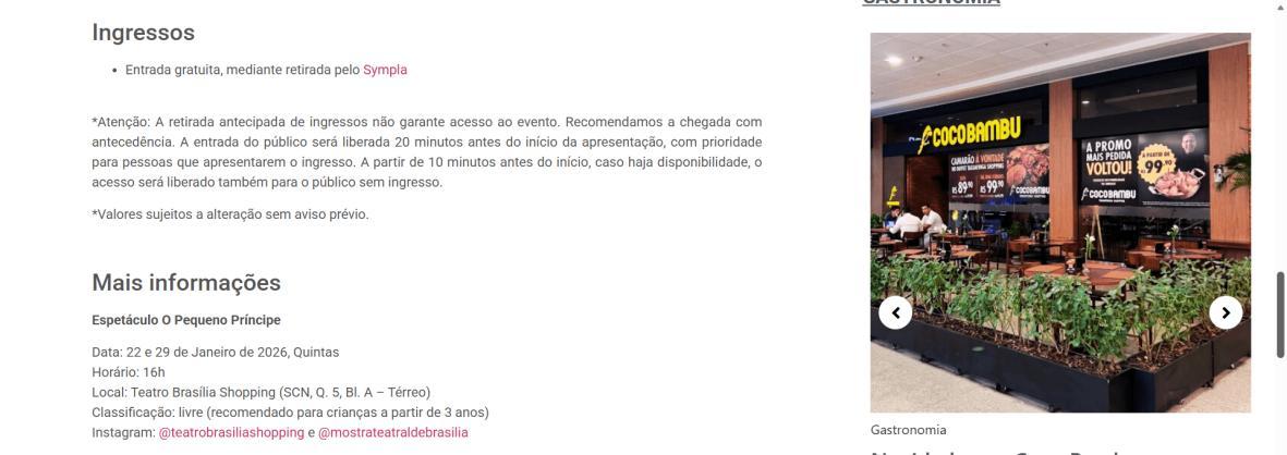 Entrada gratuita https://www.sympla.com.br/evento/o-pequeno-principe-espetaculobilingue/3272638, sujeito à lotação do teatro (98 lugares)