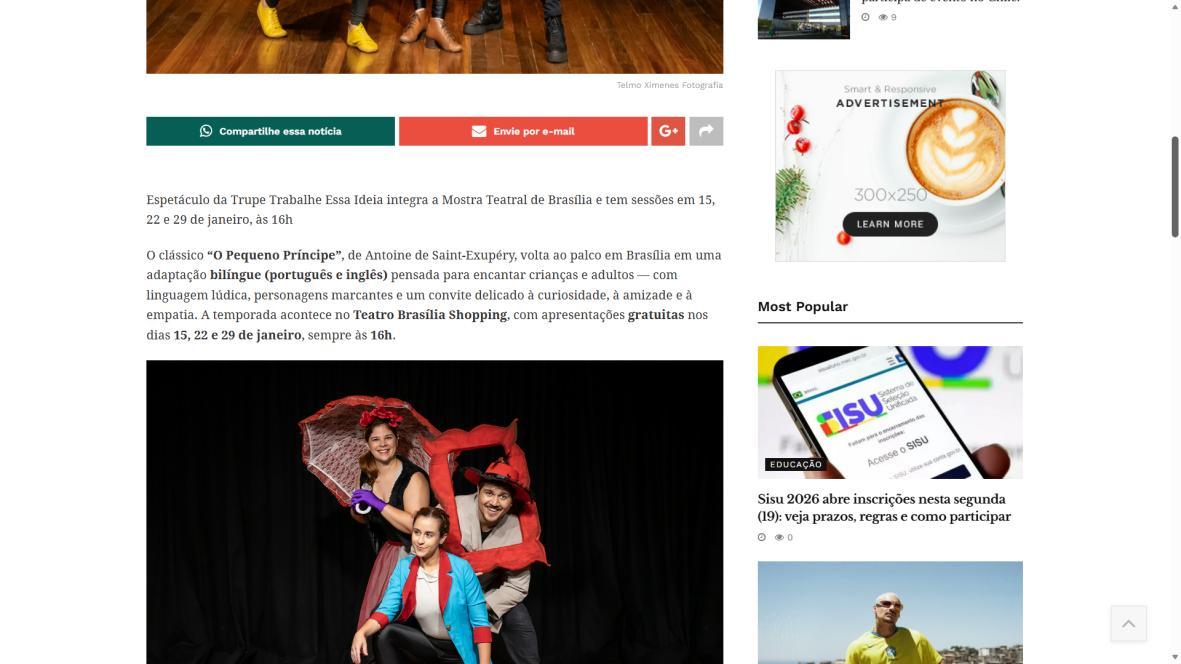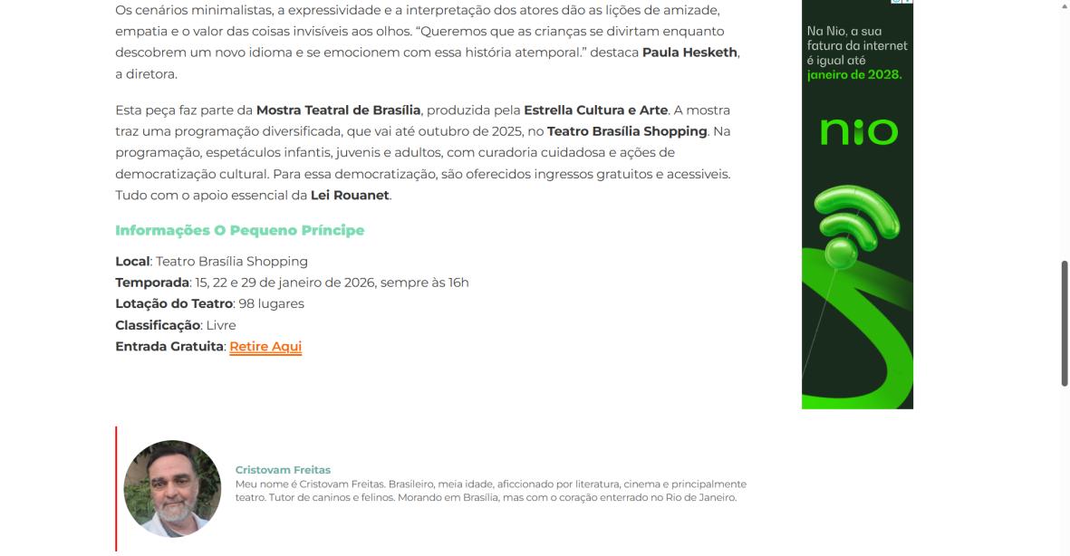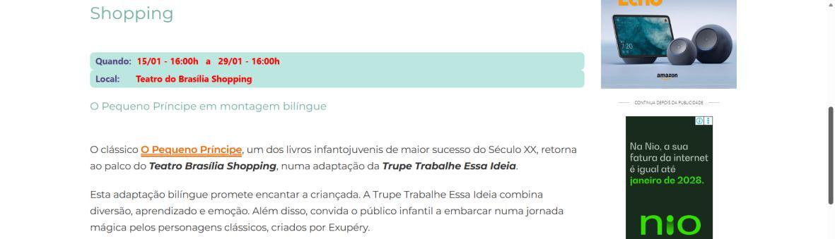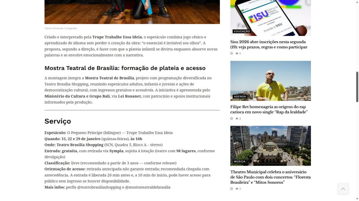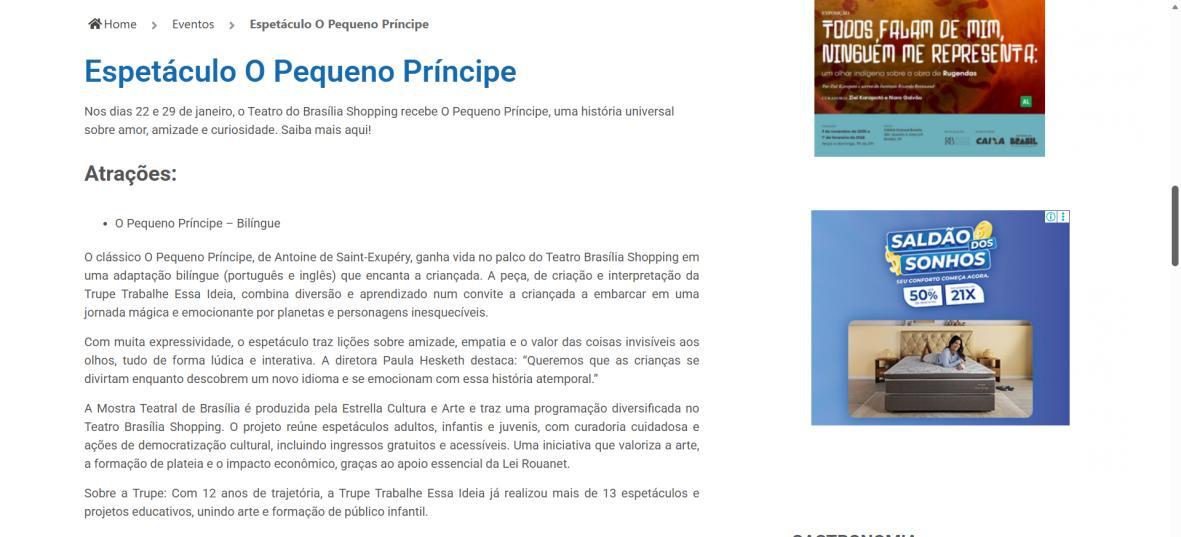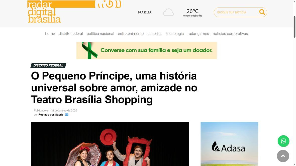 “O Pequeno Príncipe” ganha versão bilíngue gratuita no Teatro Brasília ShoppingCidadeCULT