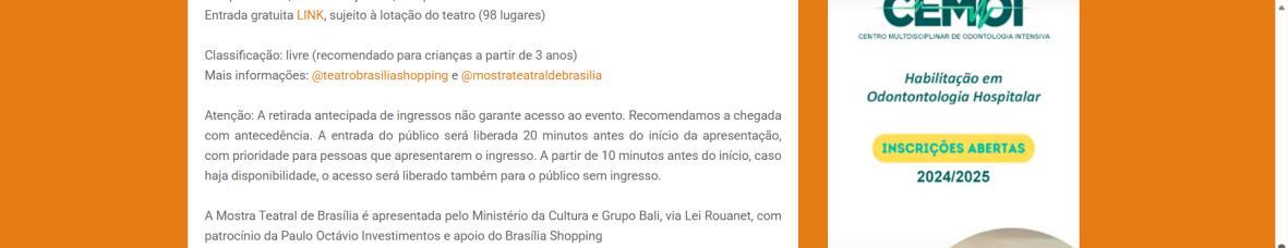 Mais informações: @teatrobrasiliashopping e @mostrateatraldebrasilia