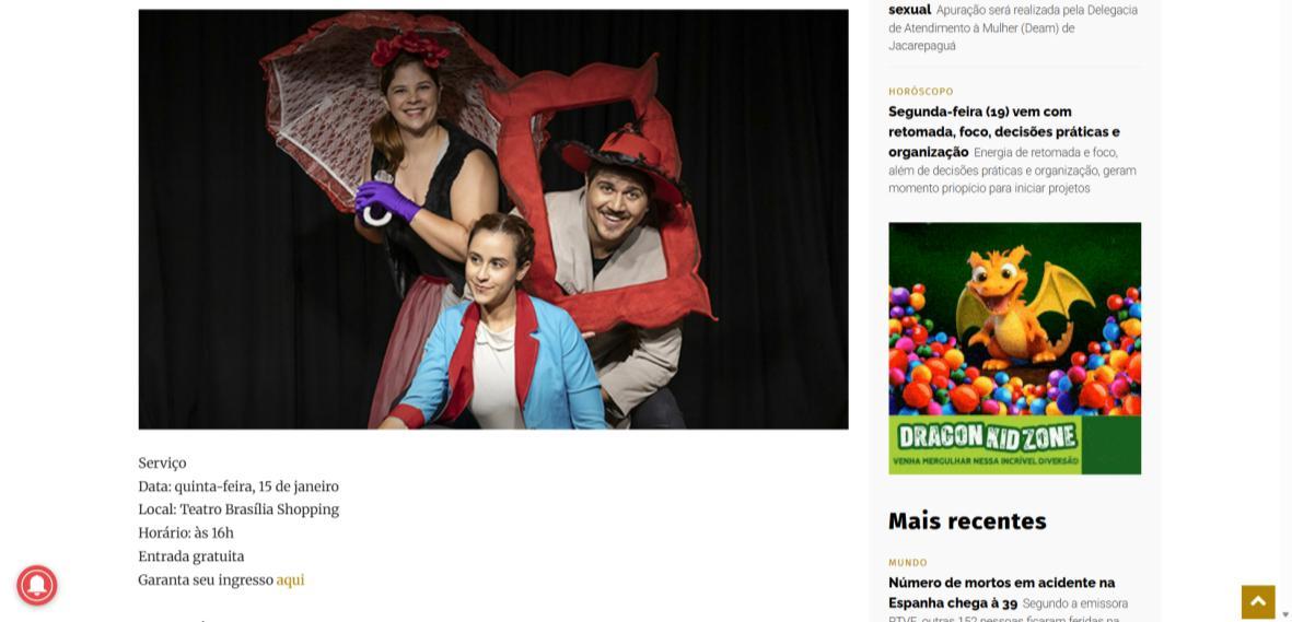 Local: Teatro Brasília Shopping (SCN, Q. 5, Bl. A – Térreo)