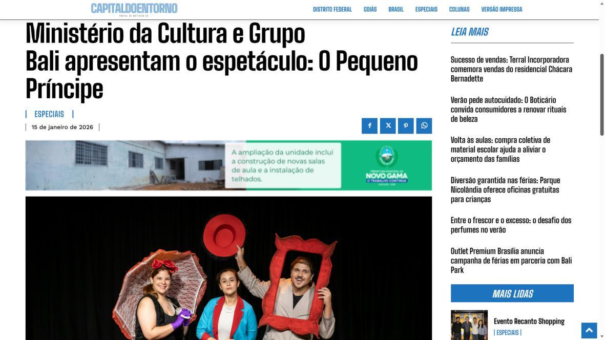 Ministério da Cultura e Grupo Bali apresentam o espetáculo: O Pequeno PríncipeCapital do Entorno