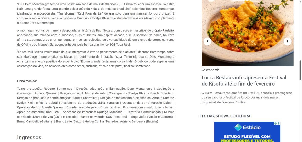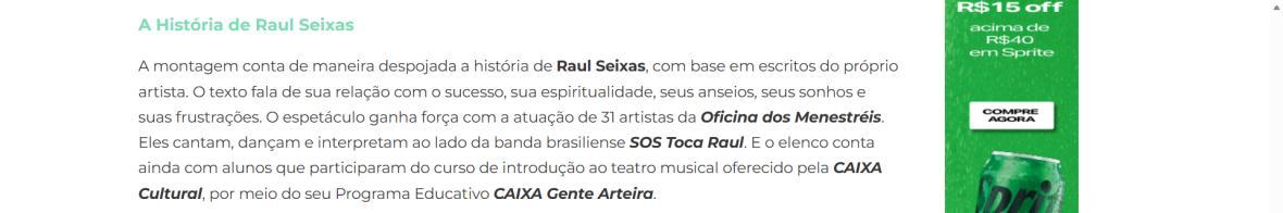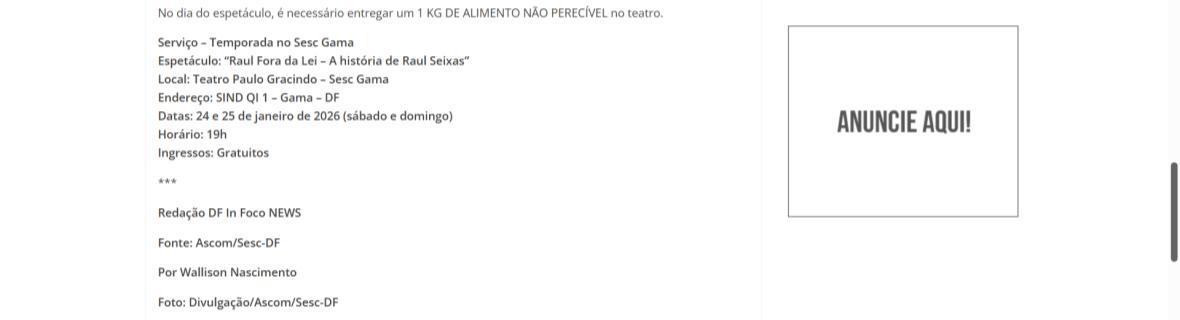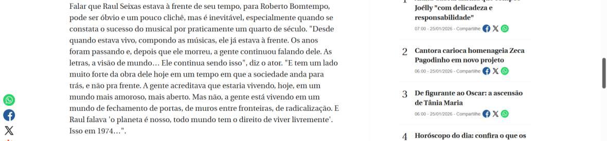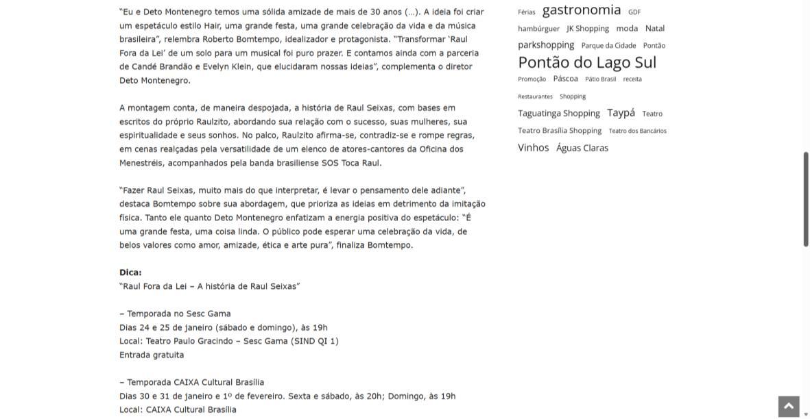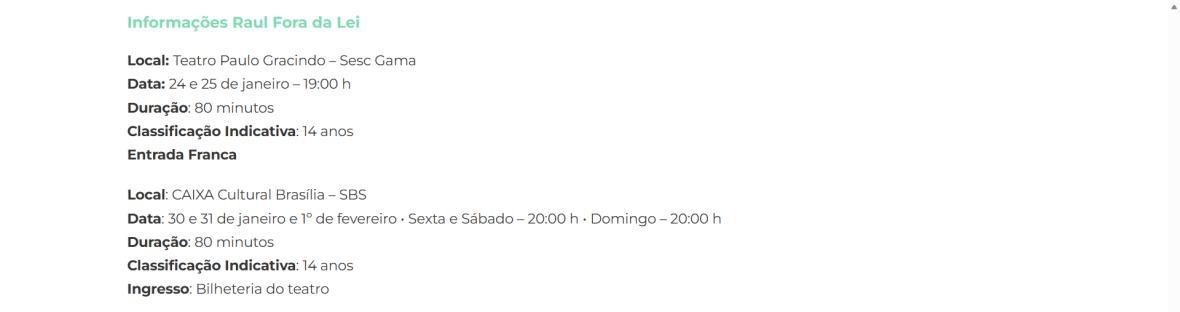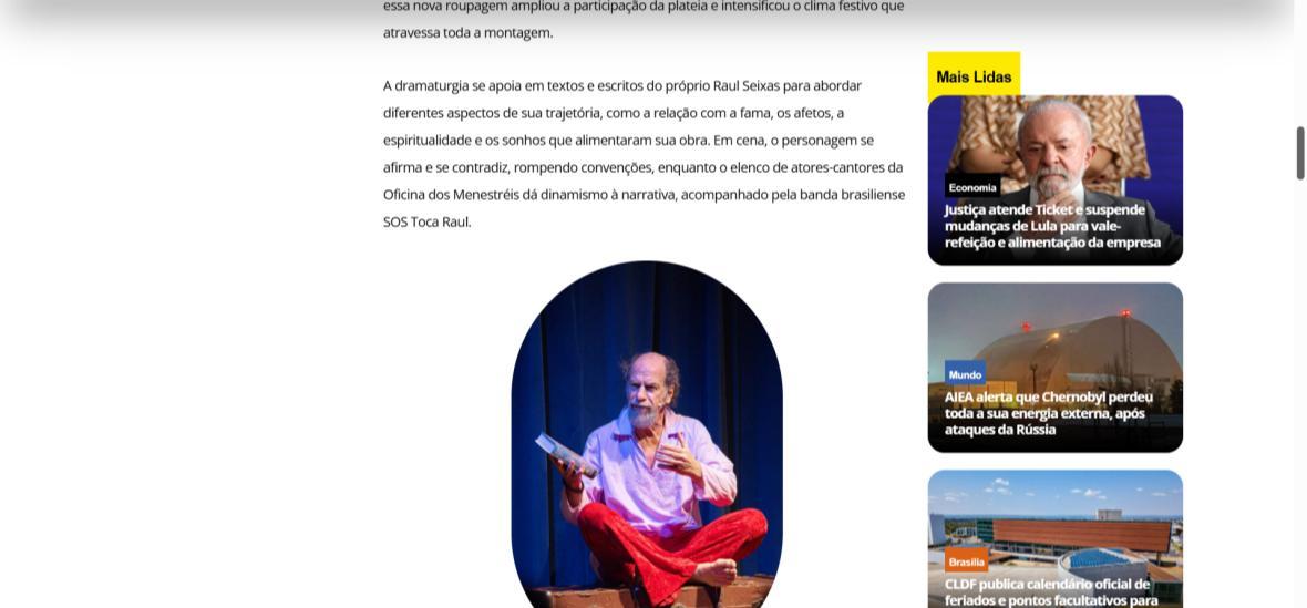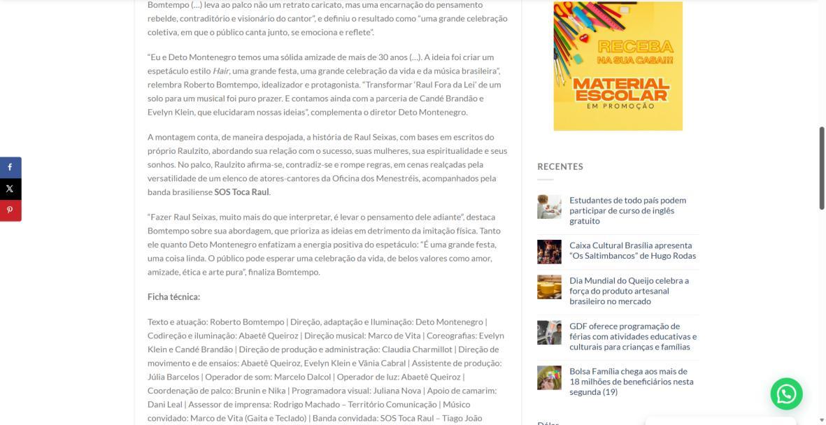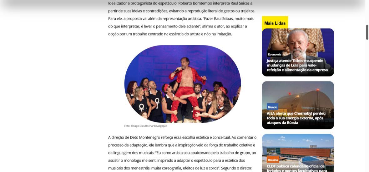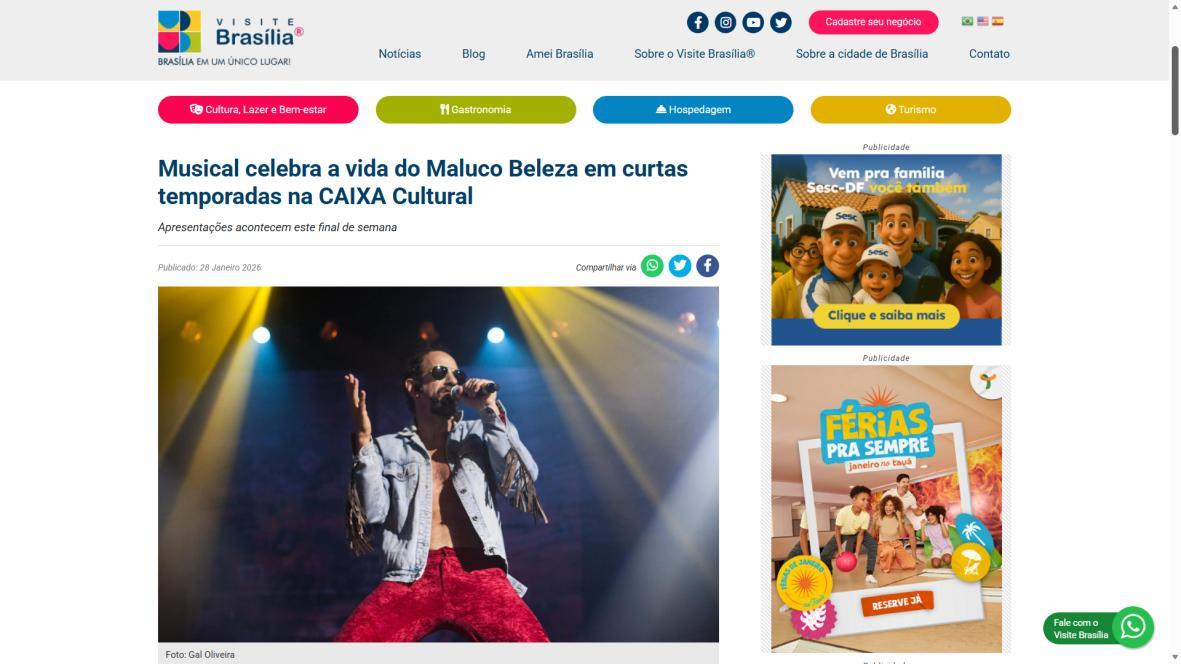 Sucesso absoluto desde 2000, o musical "Raul Fora da Lei – A história de Raul Seixas" segue em cartaz com energia contagiante. Após uma temporada de grande êxito na CAIXA Cultural Brasília em setembro de 2025, com sessões lotadas e crítica entusiástica, o espetáculo agora faz curtas temporadas no Teatro Paulo Gracindo (Sesc Gama), dias 24 e 25 de janeiro, e retorna ao Teatro da CAIXA Cultural Brasília, dias 30 e 31 de janeiro e 1º de fevereiro.