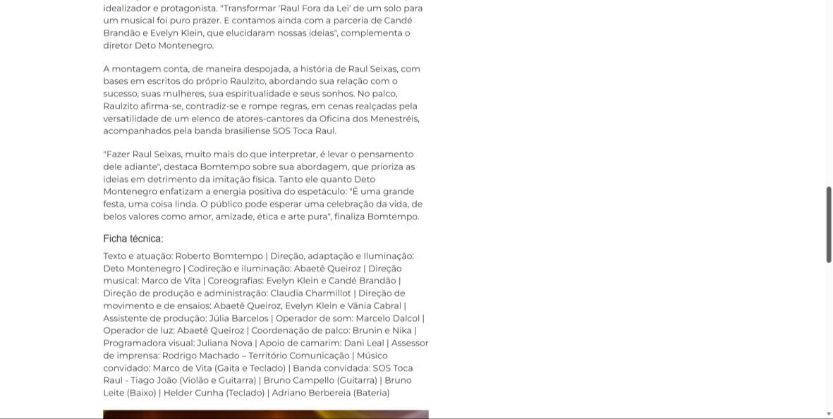 Espetáculo: "Raul Fora da Lei – A história de Raul Seixas"