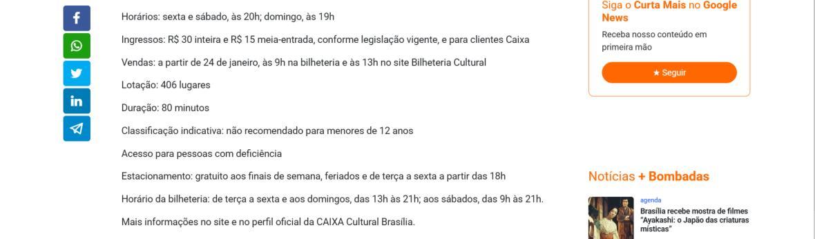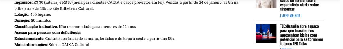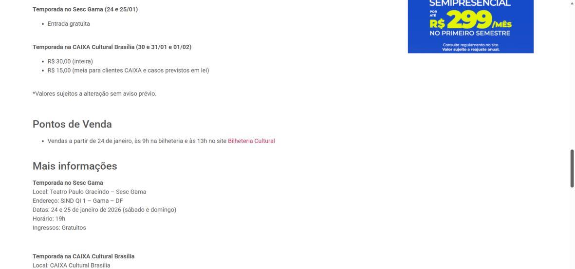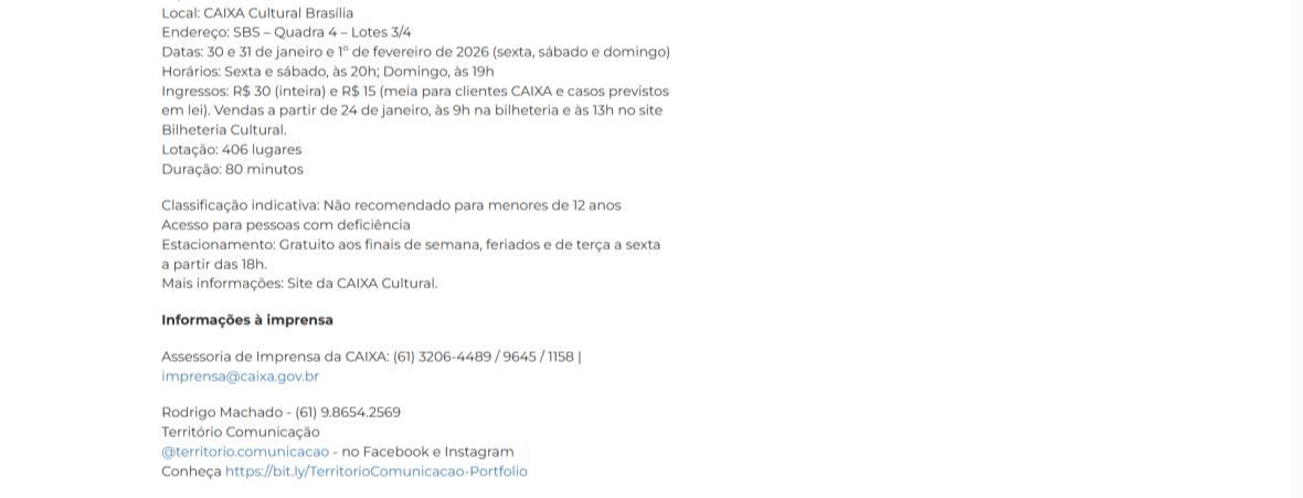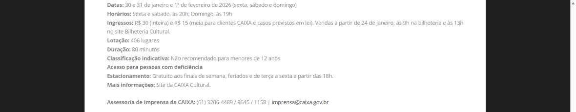 Serviço – Temporada na CAIXA Cultural Brasília
