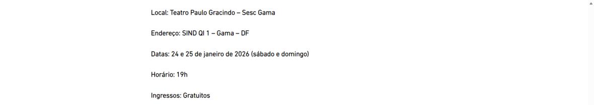 Local: Teatro Paulo Gracindo – Sesc Gama