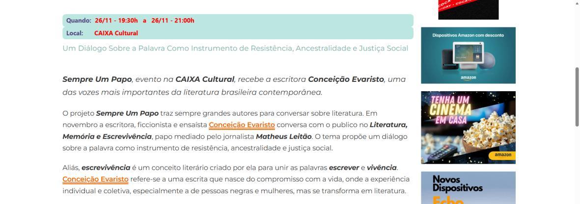 Conceição Evaristo inspira diálogo sobre escrevivência - AQUI TEM LITERATURA
