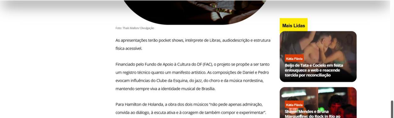 Em novembro de 2025, três eventos gratuitos e acessíveis marcarão o lançamento no Distrito Federal, com pocket shows realizados na Escola de Música de Brasília (17/11), no Clube do Choro (24/11) e na Universidade de Brasília (25/11). Todas as apresentações contarão com intérprete de Libras, audiodescrição e estrutura física acessível.