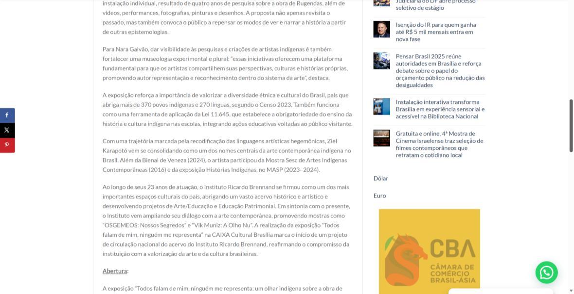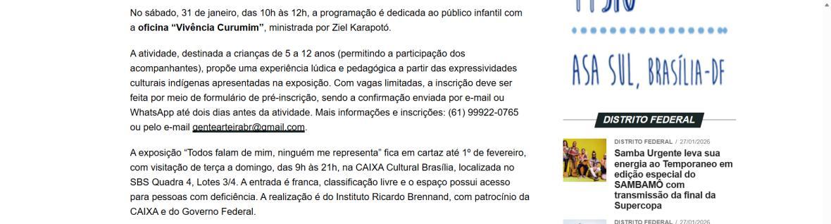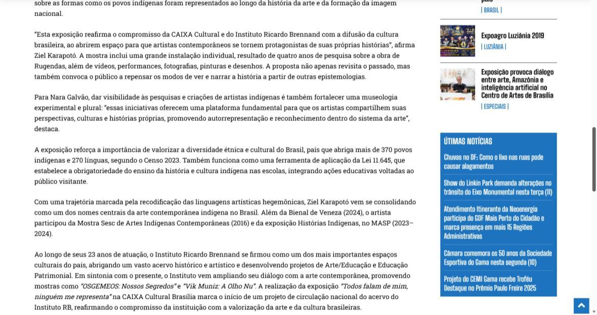 Cultural Brasília apresenta a exposição sobre o olhar indígena | Blog Eldo Gomes