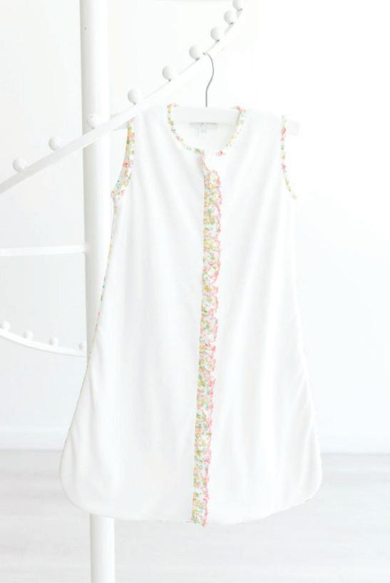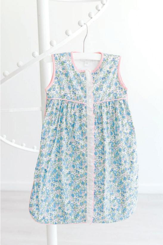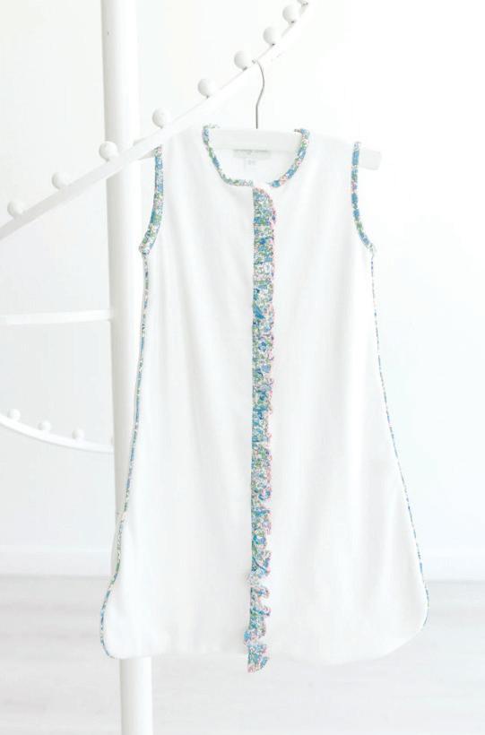 Sleeveless Cover Up - White w/ Blue Floral Trim: SCU-BF
