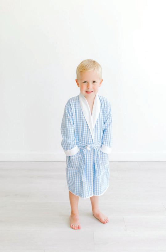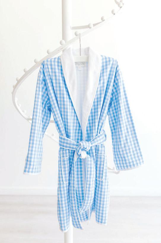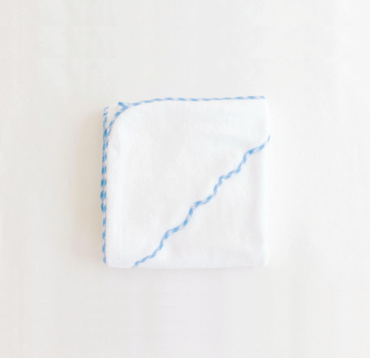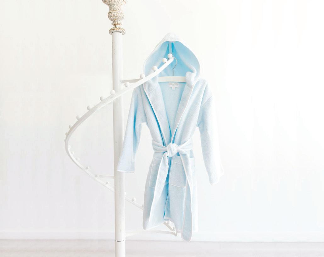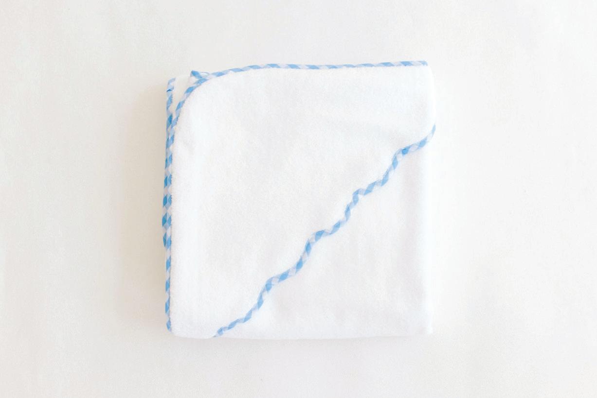 Bathrobe - Blue Terry w/ Hood & White Trim: BR-BTER-W