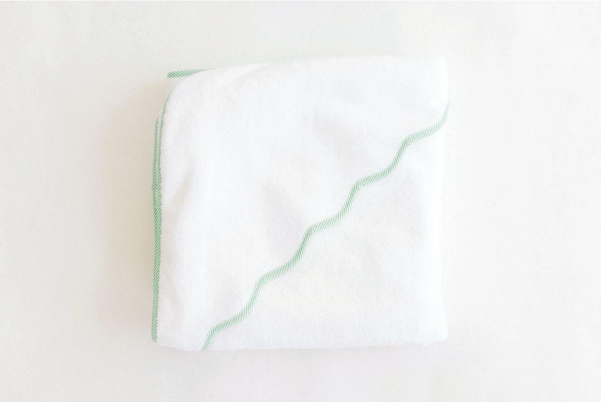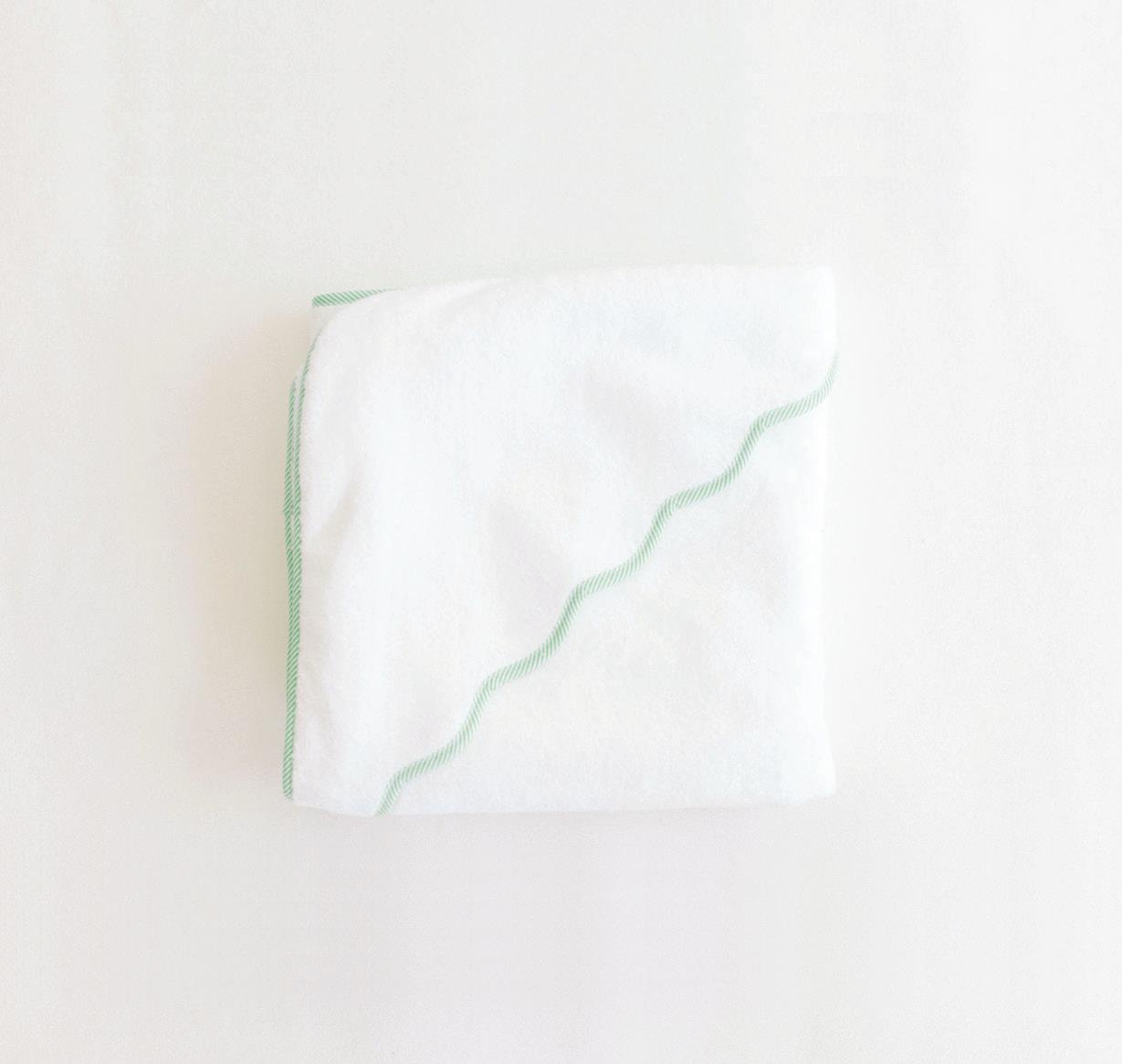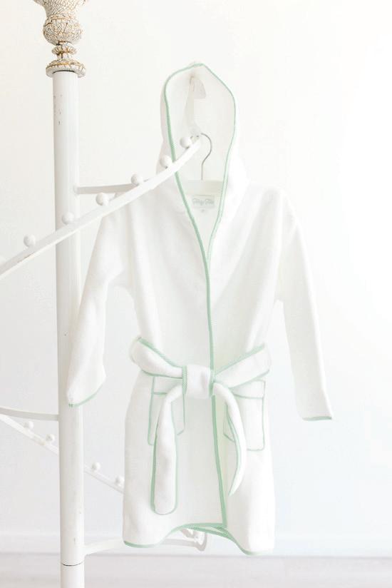 Bathrobe - White Terry w/ Hood & Green Stripe Trim: BR-WGS