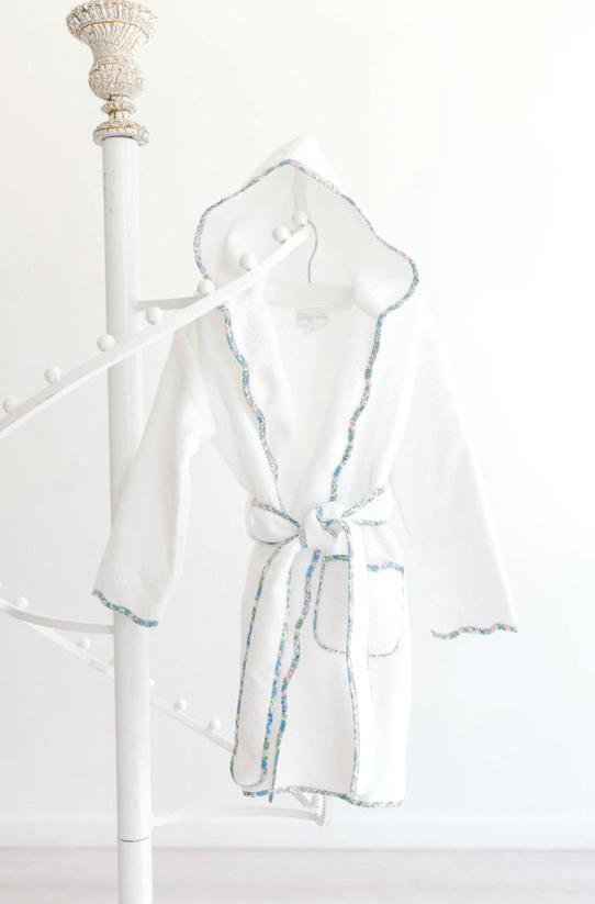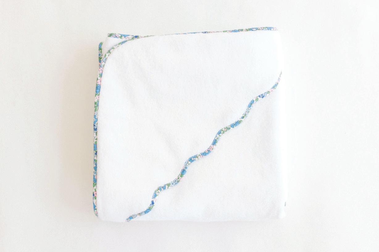 Bathrobe - White Terry w/ Hood & Blue Floral Trim: BR-WBF