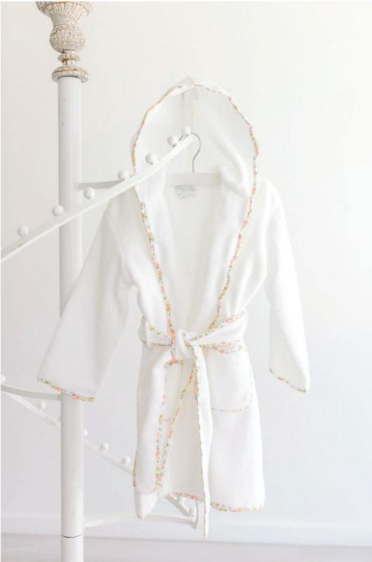 Bathrobe - White Terry w/ Hood & Yellow Floral Trim: BR-WYF