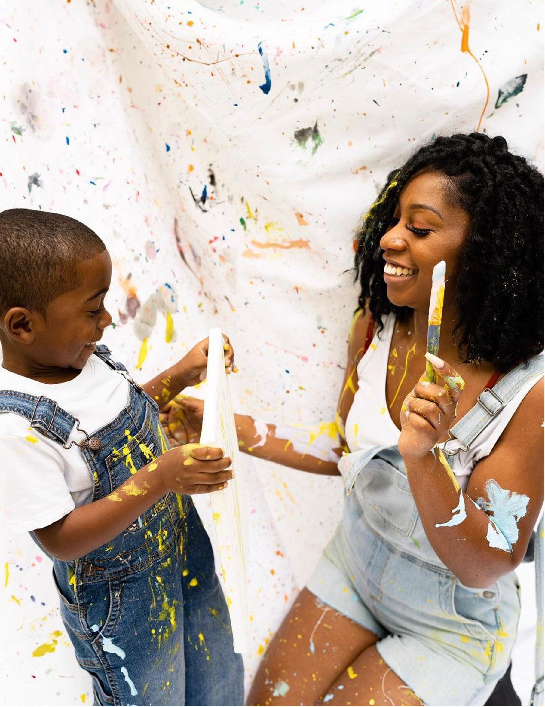 While the prospect of being home with her child, she says, was beautiful, it also brought to the forefront the challenges of her personal healing journey. Monet grappled with anxiety, trying to connect with her child while simultaneously dealing with the physical, mental, and emotional toll of her recovery. Upon returning to work, she found herself caught in a balancing act, juggling motherhood, a full-time job, and the dream of building a business. The demanding schedule left little time for self-care, and the guilt of spending precious moments away from her son weighed heavily on Monet. “In an effort to spend more quality time with my child, we began painting together. These creative experiences not only provided an outlet for reducing my stress and anxiety but also forged a profound connection with him,” Monet says.