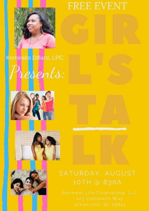 Tamara is equally passionate about the additional services Renewal Life offers which include an on-site women’s empowerment group that meets several times during the year, and a new, one-day workshop for adolescent girls, both led by Kemeako Dillard, LPC. Other group and support offerings include individual parenting/coaching sessions and group opportunities that are led by Angela Gaines, LBSW, and grief support and consulting services for other private practice owners.