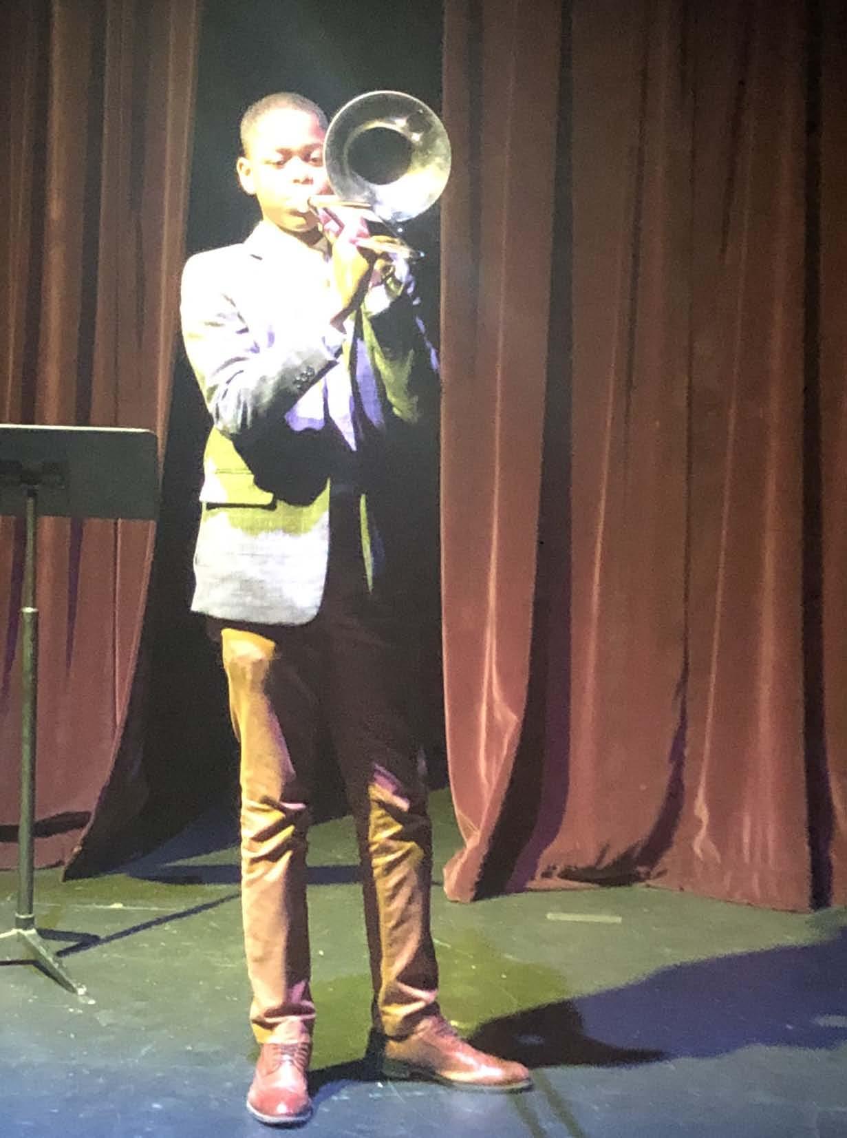 in band for playing his trombone and for his character. At Charter Oak, they gifted him with new Yamaha trombone. It was stated that he was gifted the horn due to character. He is such a respectable young man and he always volunteers to help others with learning how to play their instrument. Since moving to Atlanta in June of 2019, Cam has performed with the Rialto Youth Jazz Orchestra at Georgia State University. He made 1st Chair at his school, North Cobb High School’s concert band and is a member of their marching band as well; all while continuing to play on the brass band and marching band at his church.
