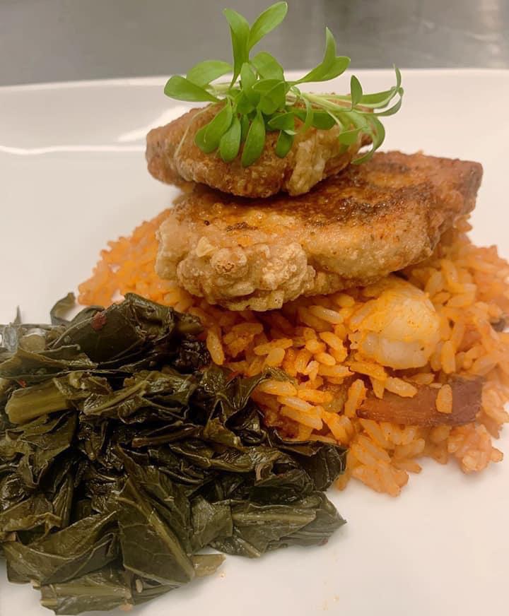 Chef Carlos loves food and finds inspiration in cooking. “It’s starts with having a love in our strong culture of Gullah. I believe that food is an experience. I was born in the low country. Being a black executive chef was so hard and almost never heard of. But I believed that I was born to create art. That belief pushed me to move forward, reach back, and pull others up and show that we can be whatever we desire,” he says.