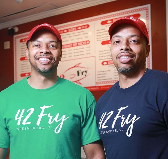 Born and raised in Greenville, NC, the brothers say their love of soul food and seafood is tied to fond memories of family and food. Both attended and graduated from East Carolina University and were played for the college’s football team. “Greensboro is home to me now. And my wish is for everyone to experience 42 Fry,” says Antwan. “It’s like a family cookout every day at 42 Fry.”