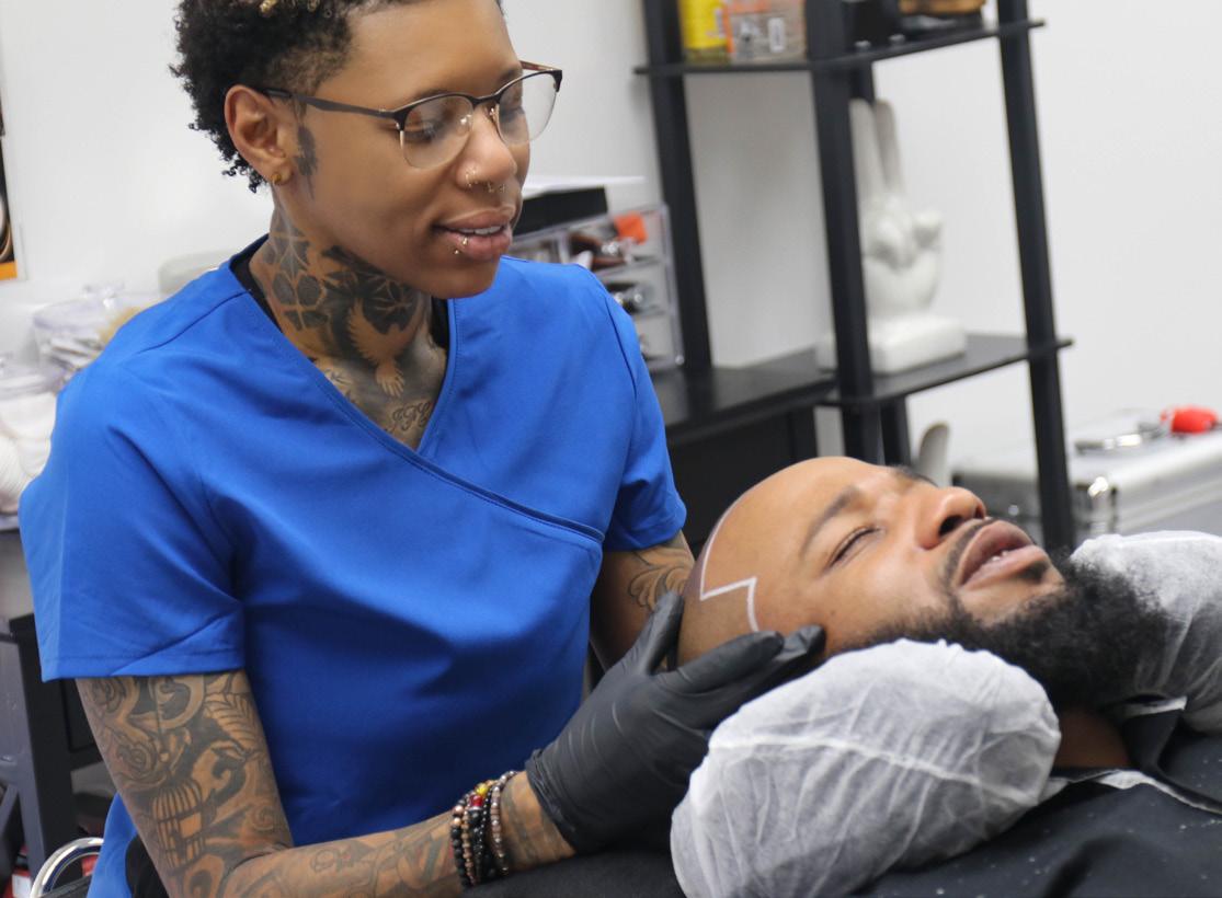 In addition to providing SMP, Carolyn is still a master barber and the owner of Art of Cuts Barber Lounge in Greensboro. Carolyn has been cutting hair since 2004 and has been providing SMP since she became certified Summer 2020. h