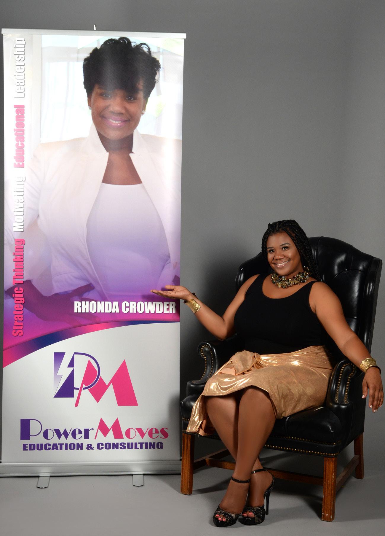 Rhonda is the CEO and Founder of Power Moves Education & Consulting, and Power Moves Performing Arts Academy. “I am driven by pulling the creative out of someone who never thought they would succeed. I enjoy expounding on the greatness inside of them, bringing it to flourish it,” she shares.