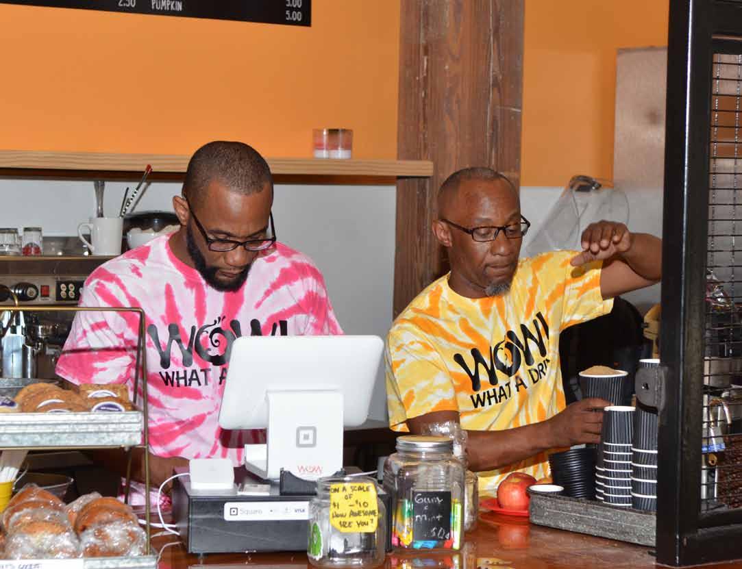 WOW What A Drink, LLC and Café Revolution are minority owned family-oriented businesses located on the lower-level of the Revolution Mill.