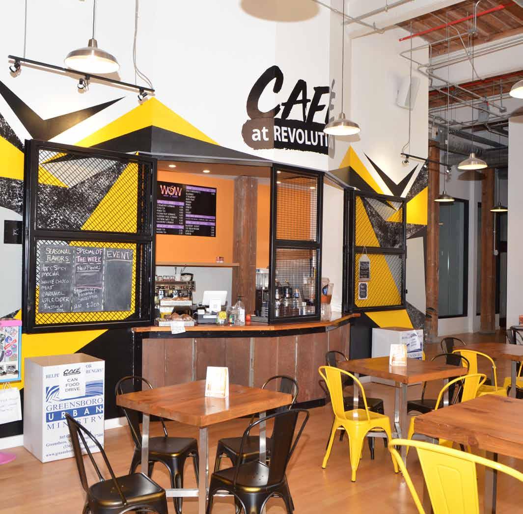 Café Revolution offers much more than a familyoriented environment. They have teamed with other shop owners such as Natty Greens and the Revolution Mill to host a Second Saturday event where all local vendors can sell their products. Kim shares, “We envisioned our Second Saturday at Café Revolution as a way for the community to come out and not only see what we’re all about, but for them to learn about what the local citizens are out here doing, too. You know Greensboro has so many creative and talented people living here. We welcome the clothing vendors, the jewelry vendors, the homemade soap vendors, and the bakery vendors. We also want to invite the Yanceyville Farmers Market vendors to come and finish selling their produce and their crafts because we vend until 6:00 p.m. So, working collaboratively is a win-win situation because this gives everybody a platform for success. We’re also trying to change the way the community sees the facility. There’s a lot of people who know this place has been remodeled, but they don’t really know what’s in here so what we’re trying to do is have them come and see for themselves.”