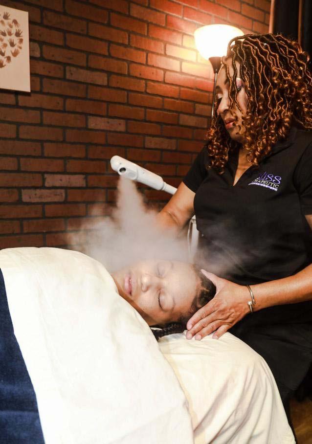 Along with massage services, Bliss Therapeutic Massage offers various spa services that a client can choose to enhance their massage experience. These are detox services, including a steam cabinet and sauna blanket, body wraps, body contouring, face rejuvenation, and laser lipo. “A client can come to Bliss and have a day of pampering, which is always good for relaxation,” she says.