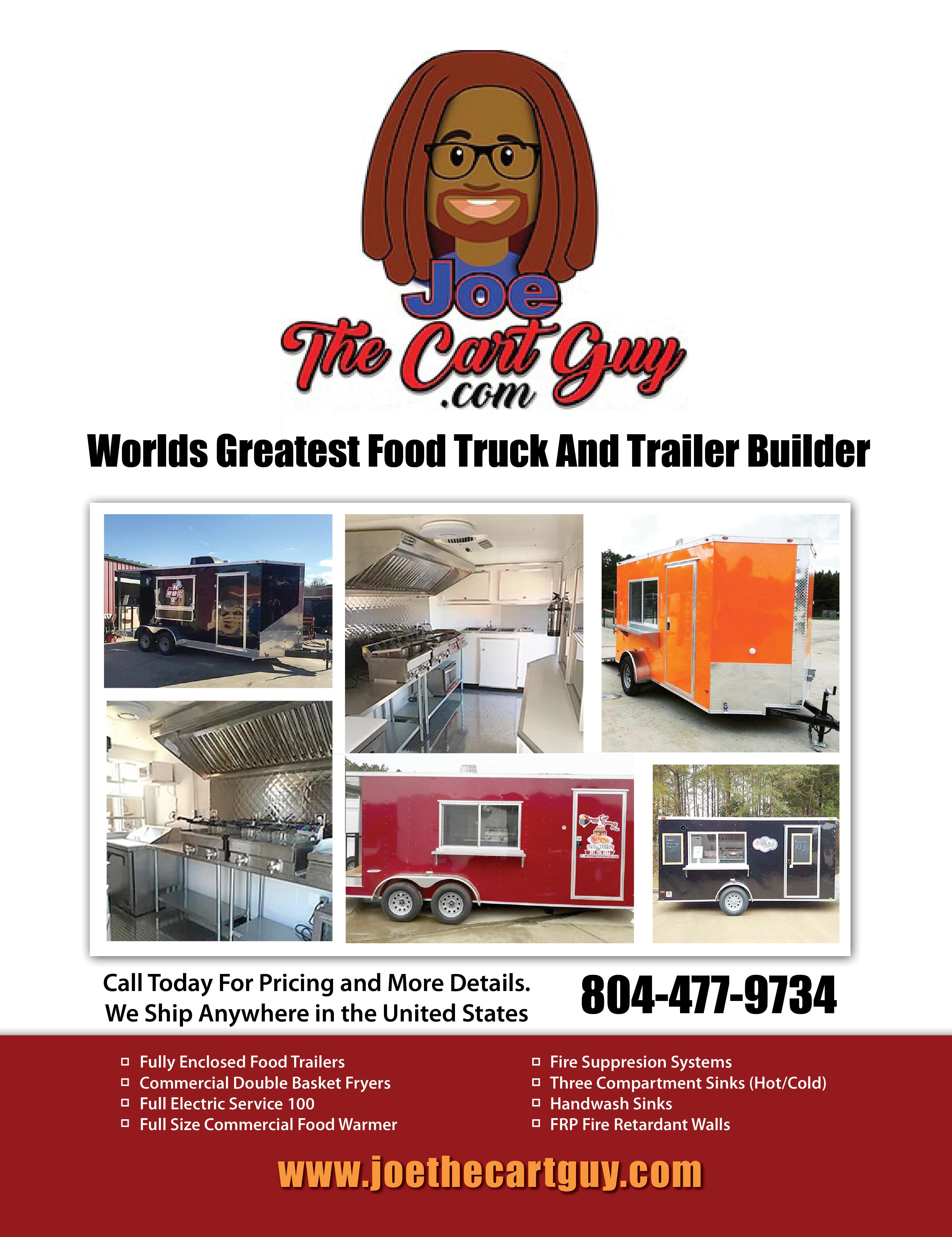Joe Rush is a self-made entrepreneur and family man, and father who loves to inspire others around him. Based in Richmond, Va, Joe The Cart Guy focuses on building original Food Trucks and Food Trailers. They also specialize in the (all-electric) trailer, something that Joe invented. They also sell restaurant equipment and cater to first-time entrepreneurs, many of who are just beginning their journey in the food industry.