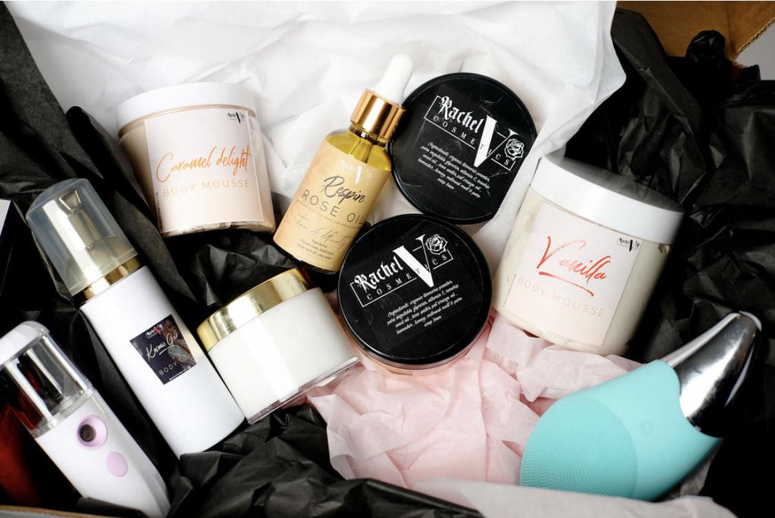 Rachel’s cosmetic company was originally launched in 2017 under the name “Vasquez Collection”. After a rebrand in 2019, “Rachel V. Cosmetics” was established. Vasquez was able to connect with an international manufacturer to produce her products after conducting the necessary research to create her formulas. Her cosmetics line offers lipstick, lip gloss, lip liner, highlighter, and makeup palettes. As a full-time esthetician, Vasquez has also created her own homemade natural skincare line, including facial soaps, toner, moisturizers, as well as an oil and serum.