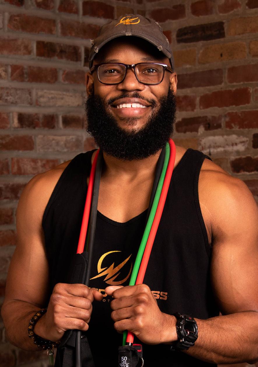 Joshua says he enjoys “all things” fitness, though weight and strength training is his primary fitness modality. “As a personal trainer, I assist clients with properly defining and executing their fitness goals. Utilizing my knowledge and expertise, I develop custom workouts that combine HITT (high-intensity interval training) with circuit, weight, plyometric, flexibility, and bodyweight training to challenge a wide range of clientele. I can create weight-loss, weight-gain, and nutritional coaching programs and currently offer one-on-one, group, and virtual training sessions. I love to coach others on the proper use of gym equipment and assist them with understanding the benefits of utilizing proper form and exercise execution,” he says.