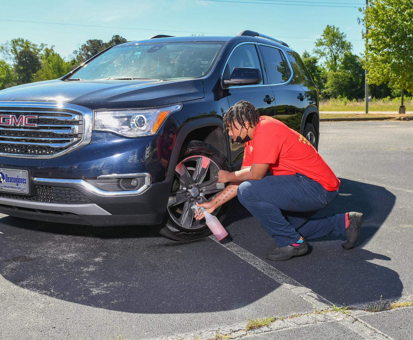 While Derrick was at Saint Augustine’s University, he realized that he needed a job. Soon he began washing cars, something that he was fairly good at, mainly because he frequently washed his dad’s car as a kid. He eventually got a job detailing cars and used that opportunity as a stepping stone to owning his own detailing business.