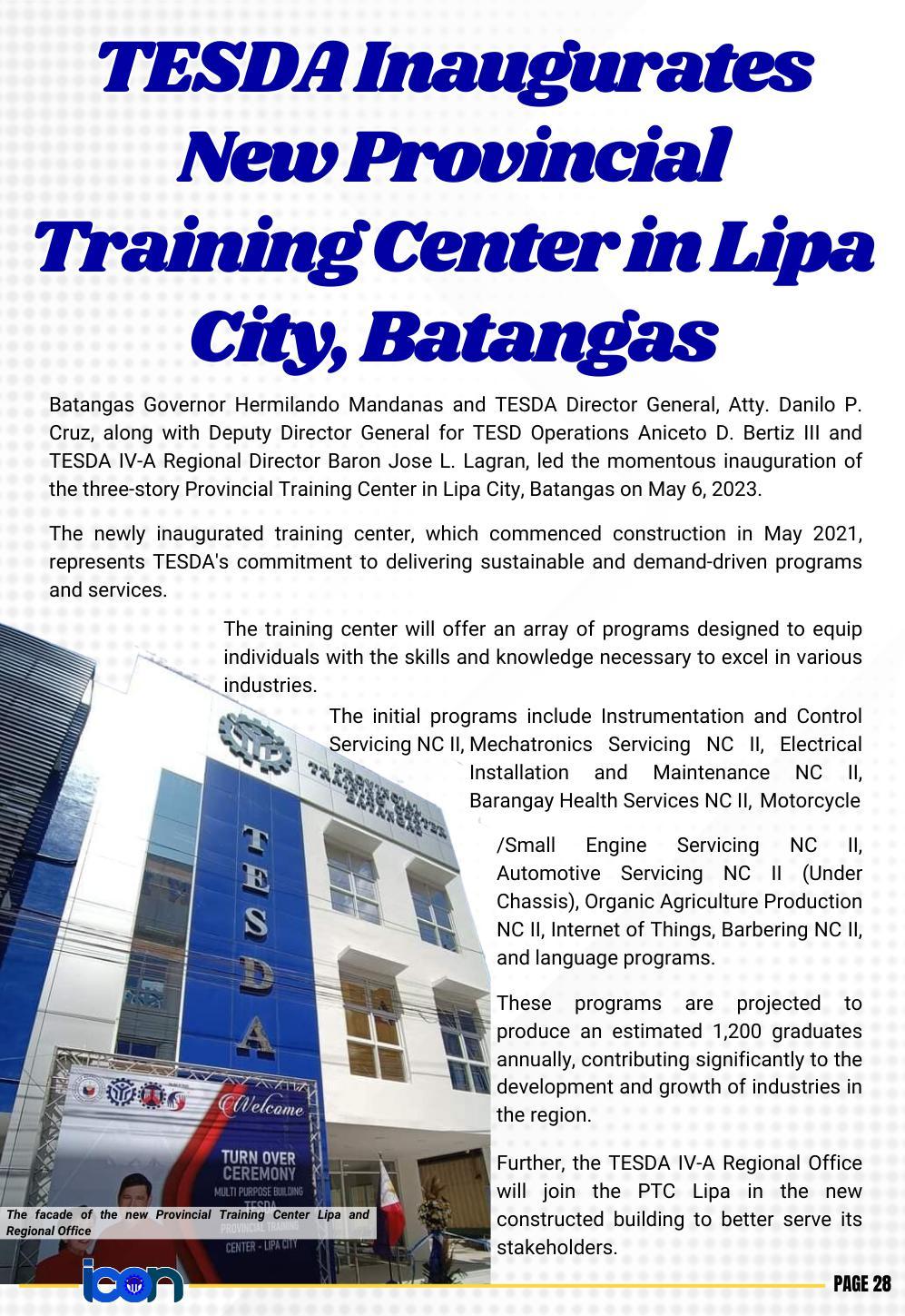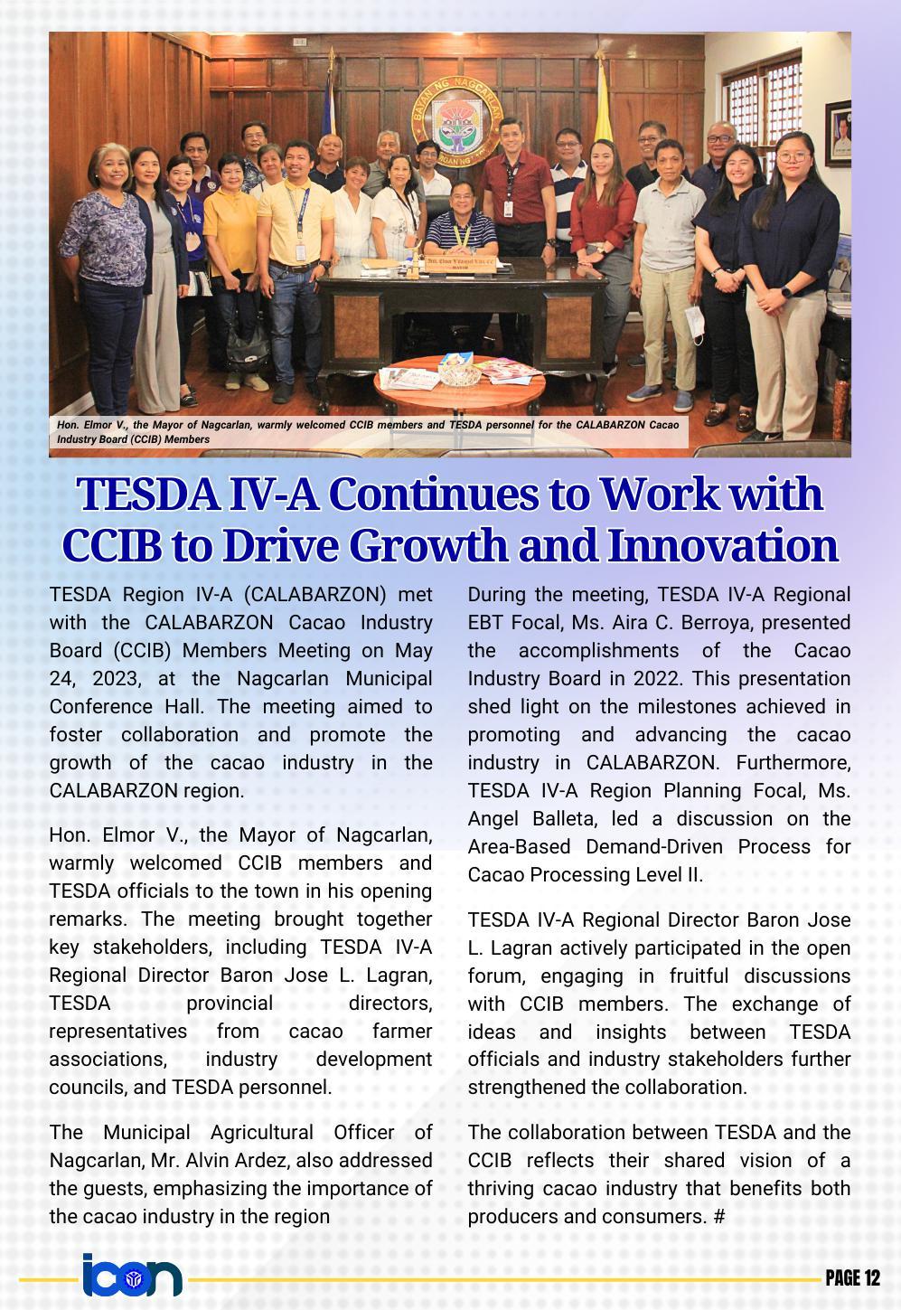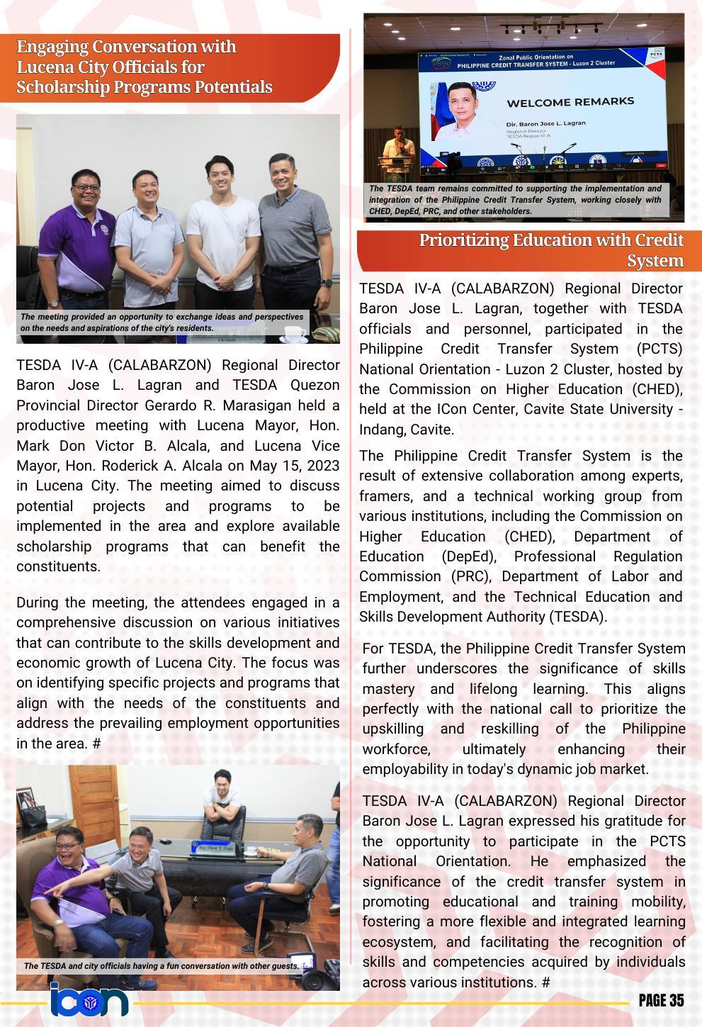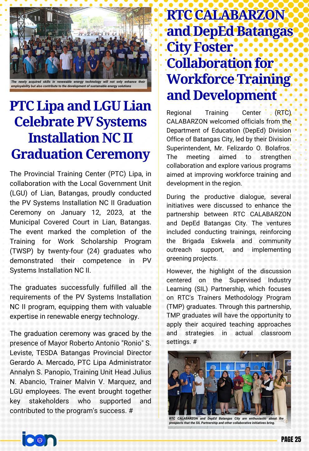The first newsletter for the year 2023 is officially out! The Calabarzon Information and Communication (ICON) is the official newsletter of TESDA IV-A. Read to know the up-to-the-minute news and announcements on the TVET sector in the provinces of Cavite, Laguna, Batangas, Rizal, and Quezon.